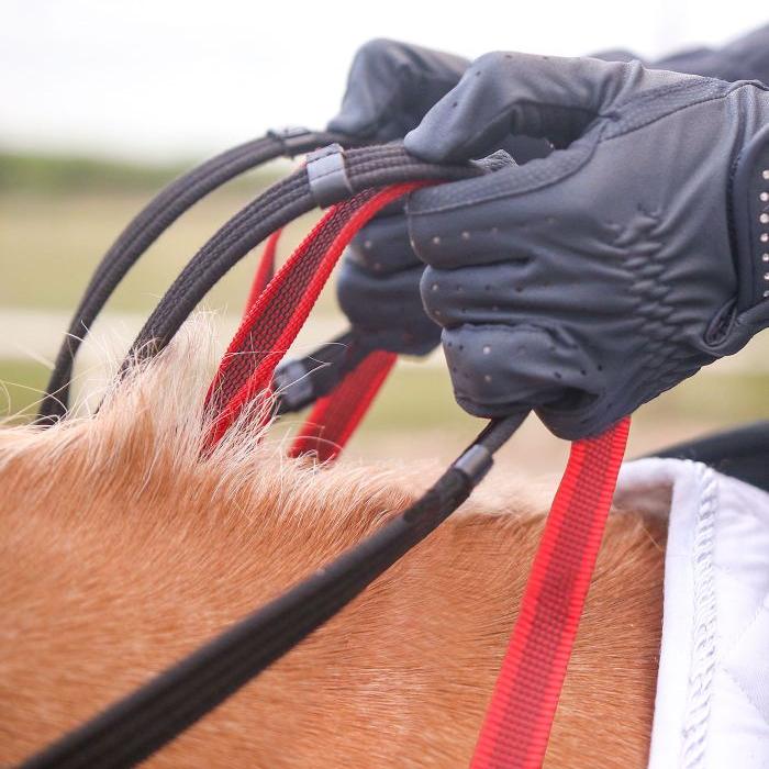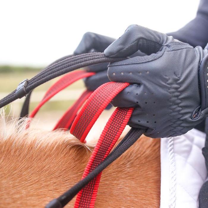 The new breastplate with safety reins is versatile in use. With a beginner on the lunge, it can be used to practise holding the reins, thus facilitating the transition to riding independently off the lunge. It provides the beginner with additional security when riding off the lunge.