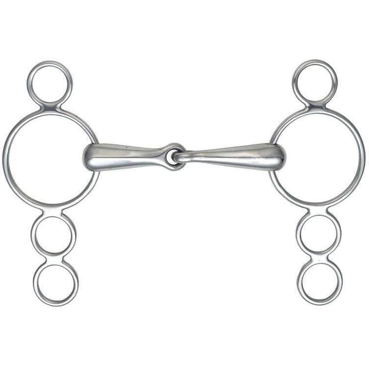 This stainless steel bit is useful when control is an issue - the three rings offer leverage options to increase the severity. The 5" and smaller sizes of this bit come with shorter cheeks to ensure the bit remains in proportion with the smaller head. A: 21mm B: 145mm (4.5" - 5") 180mm (5.5" - 6")