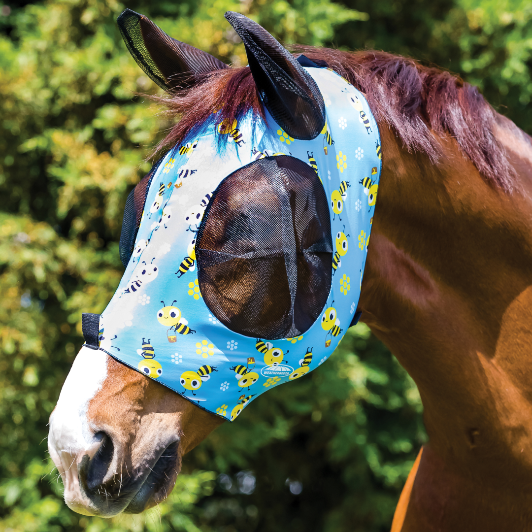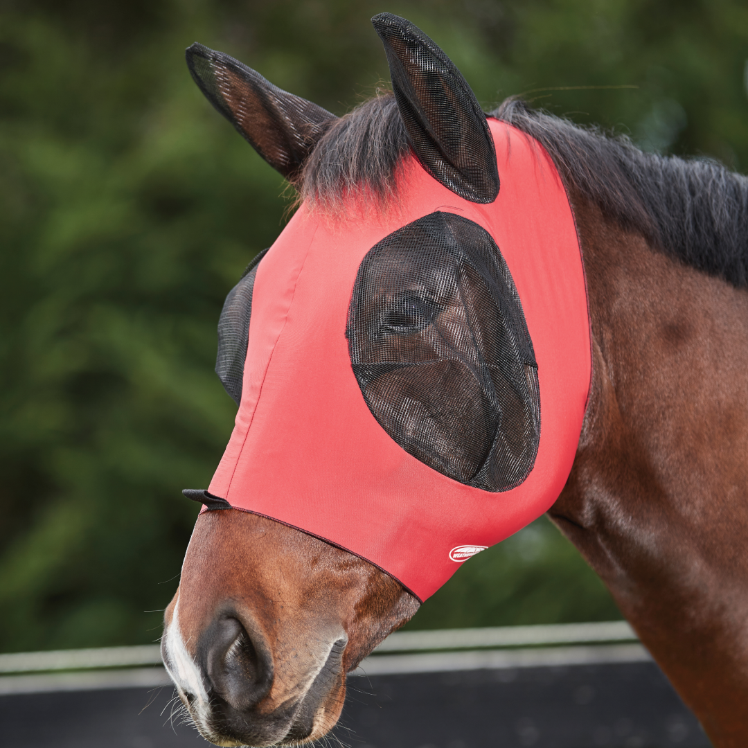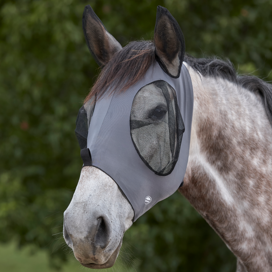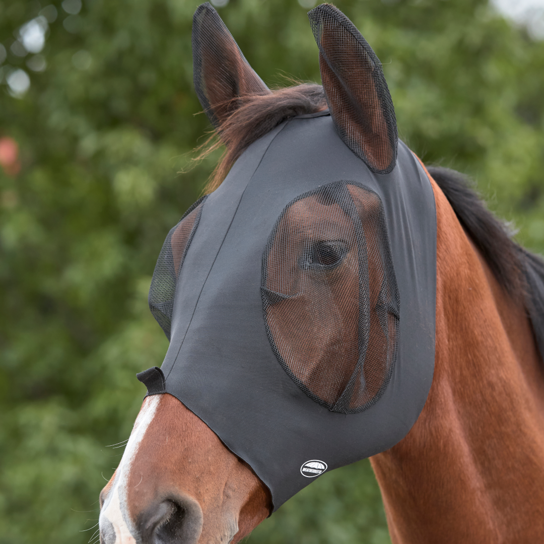 - The stretch fabric offers a secure fit around the horse’s head preventing insects from entering the mask