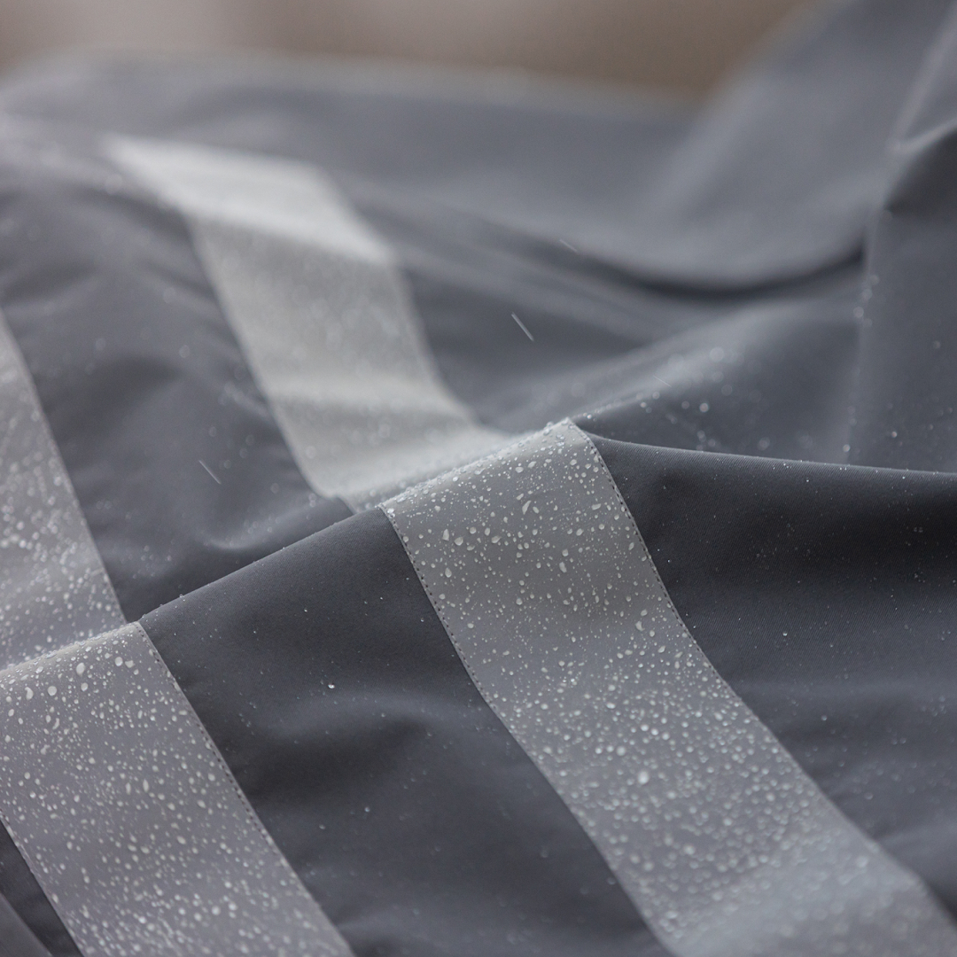 EquTex™, stretch 2-layer recycled polyester fabric with waterproof and breathable membrane. Waterproofness 20 000 mm / Breathability 20 000 g/mm2/24h.