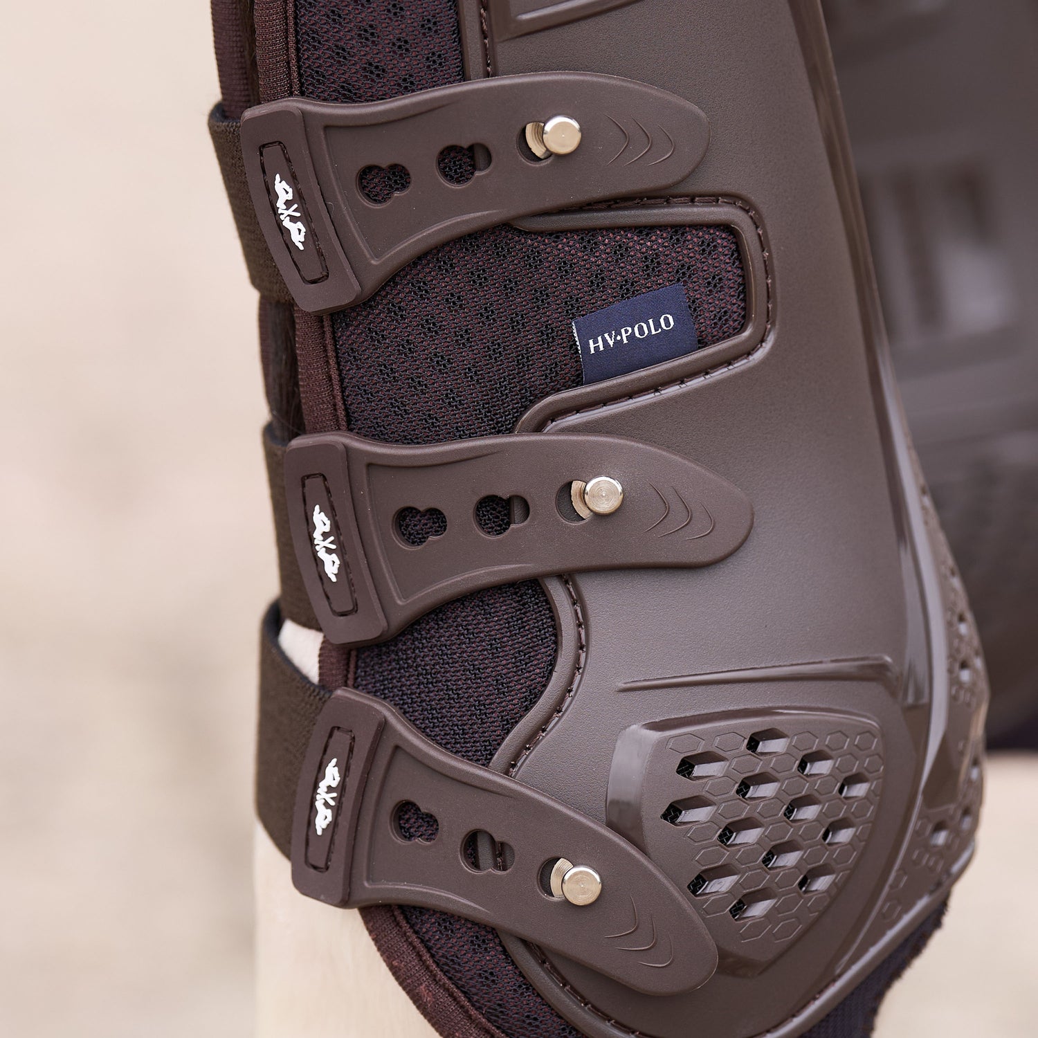 The HV Polo Pro Movement Dressage Boots provide the ideal combination of breathability, comfort, and performance. The air cycle prene lining, made of perforated neoprene and mesh, offers optimal ventilation and shock absorption. The four pin-lock closures ensure a secure and adjustable fit, making these boots perfect for rigorous training.