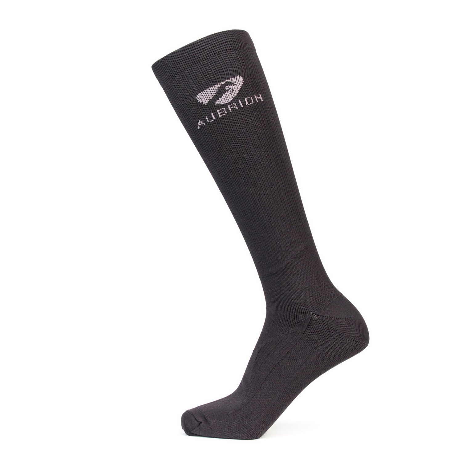 Ideal for an active lifestyle through the colder months, the Shires Aubrion Winter Performance Socks provide light compression around the legs for comfort without restriction. Zonal knit pattern on the feet offer support in all the right areas with cushioned under foot and heel for optimum comfort and open knit areas on the upper foot for ventilation. Subtle embossed leopard print and Aubrion emblems. Adult (3.5-8), Young Rider (10.5-3.5).