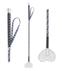 Beautiful child’s riding crop with elaborately wound nylon handle, nylon hand loop and a tongue with little heart motif. Matches current kids’ collection.