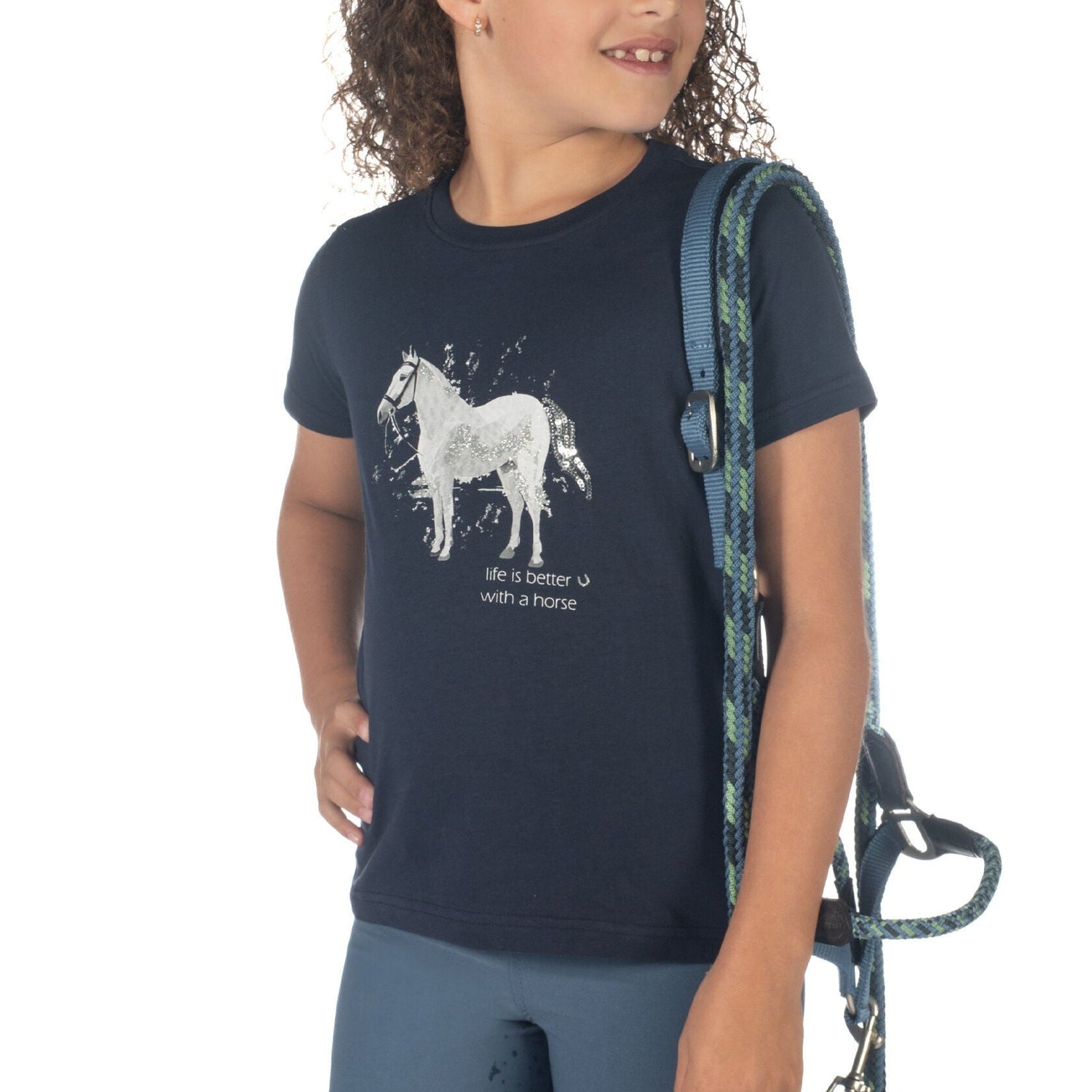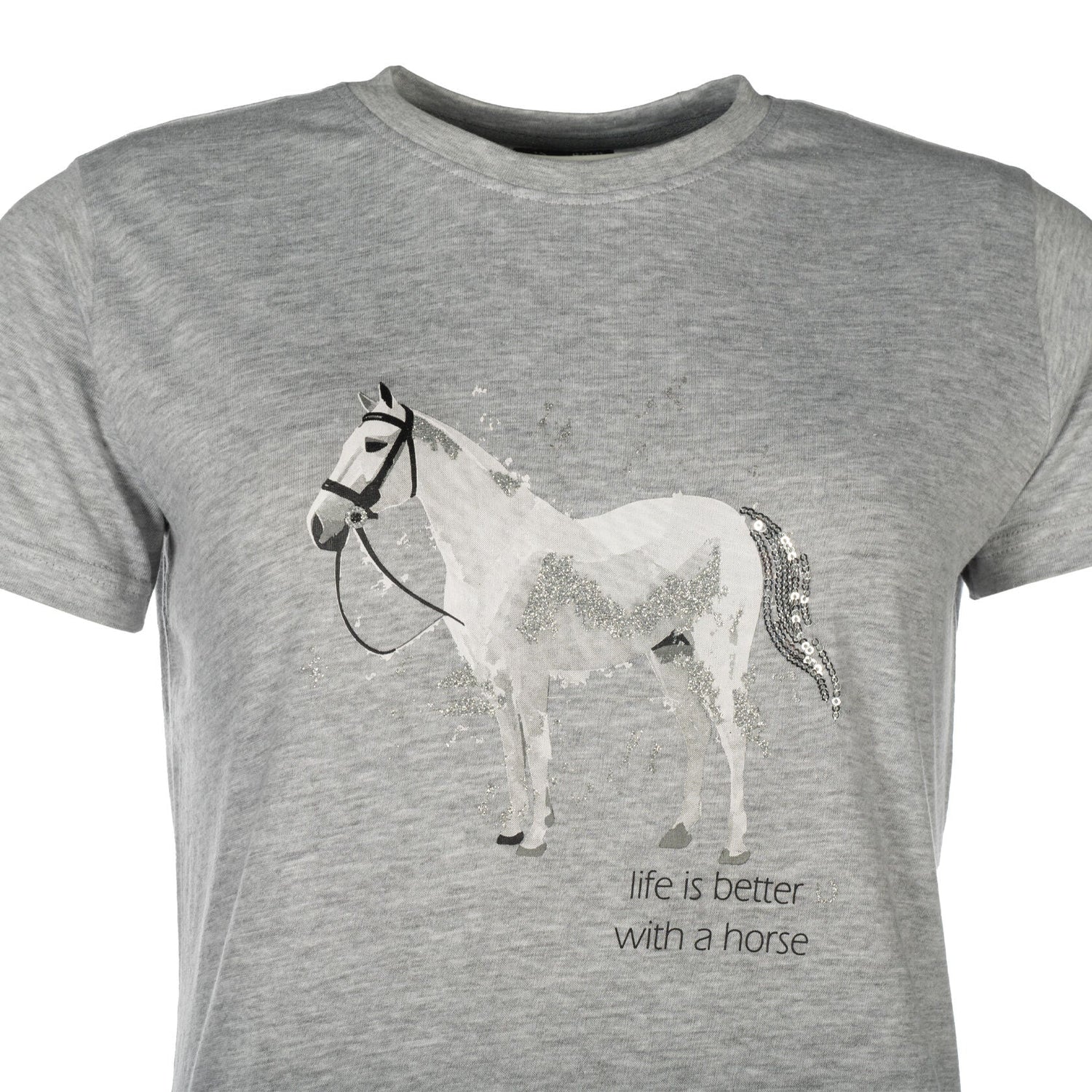 The T-shirt Sparkle is the perfect top for little horse fans! Made from 100% skin-friendly cotton, it is comfortable to wear and breathable - ideal for warm days in the stable or on the playground. The highlight of the shirt is the beautiful horse motif print, which is embellished with a sparkling glitter print and lovely sequin embroidery. This will turn any outfit into a real eye-catcher! Whether riding or in their free time - with the Sparkle T-shirt, children can express their love of horses in style.
