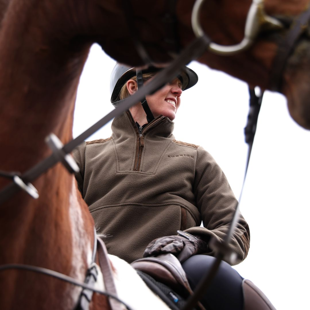 The Shires Aubrion Heritage Unisex Quarter Zip Fleece offers practical warmth and versatility for country living. Crafted from double-layered fleece with a water-resistant inner membrane, it provides insulation without bulk and protects against light showers. Reinforced with quilted faux suede on the collar, elbows, and yoke, this fleece is designed for durability. Its Dark Olive shade complements traditional rural attire, making it an essential layering piece for changing seasons. Ideal for wearing alone or under a jacket, it combines functionality with timeless style.