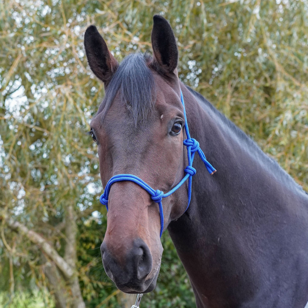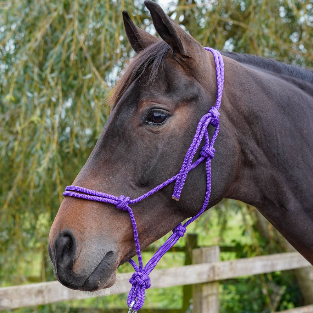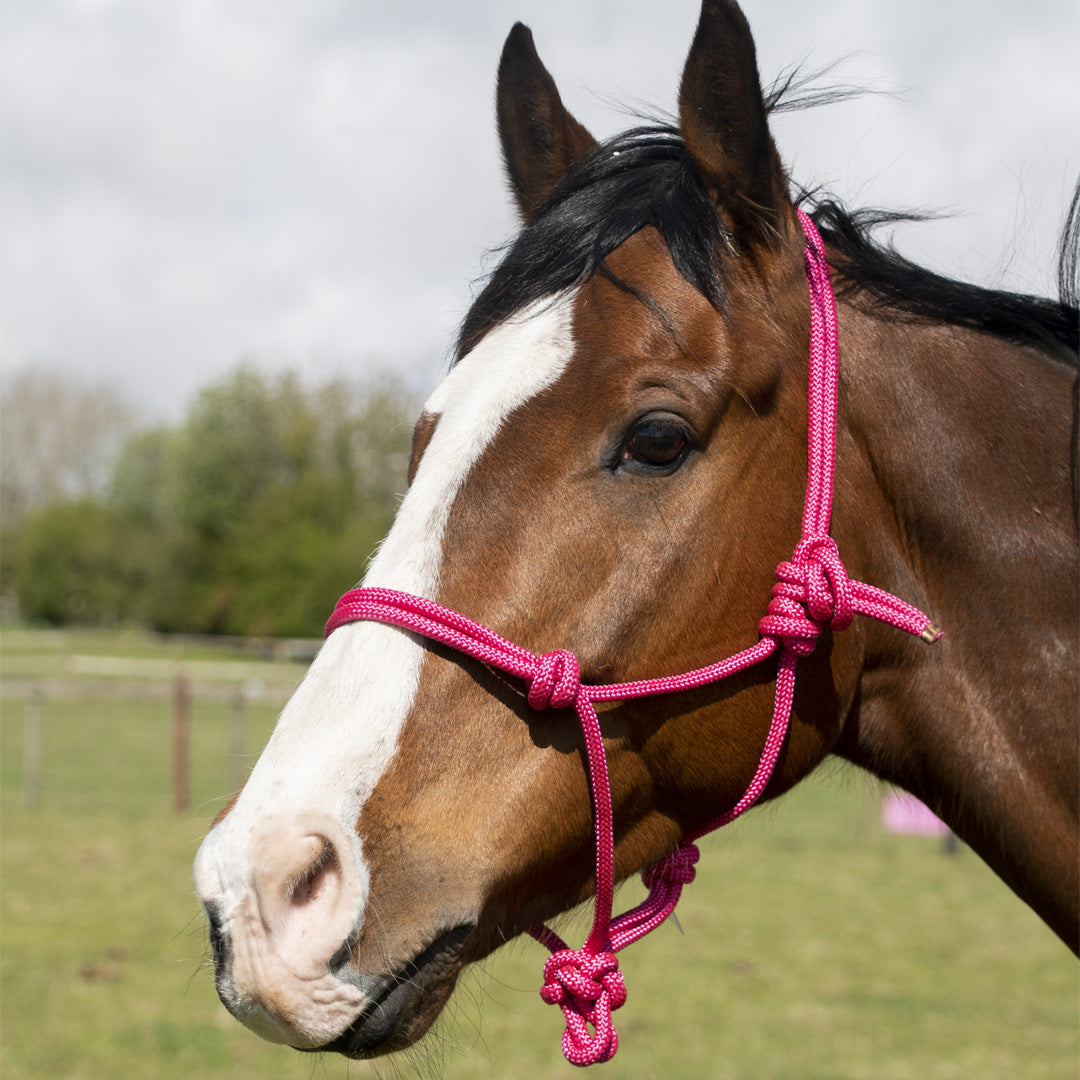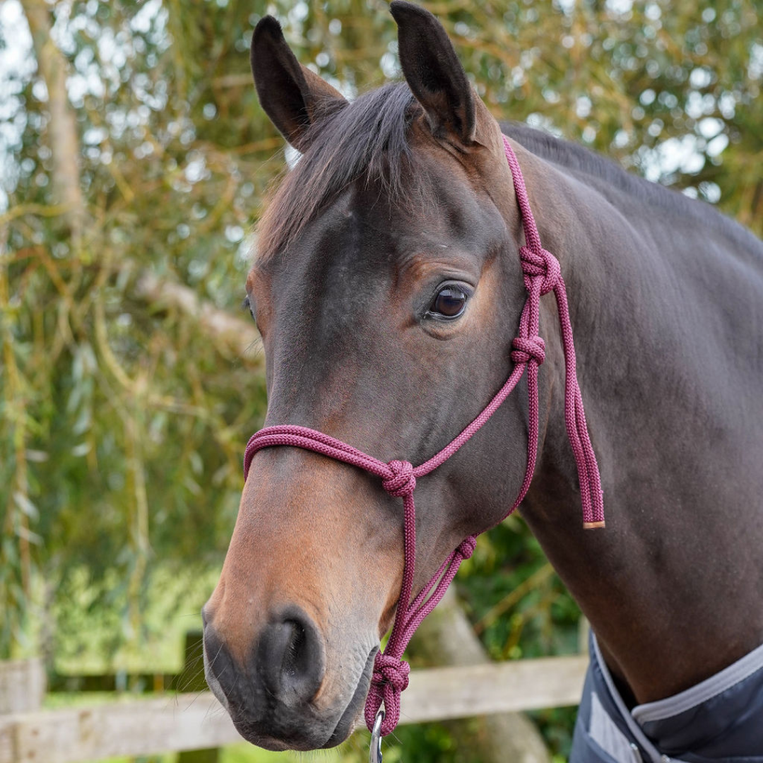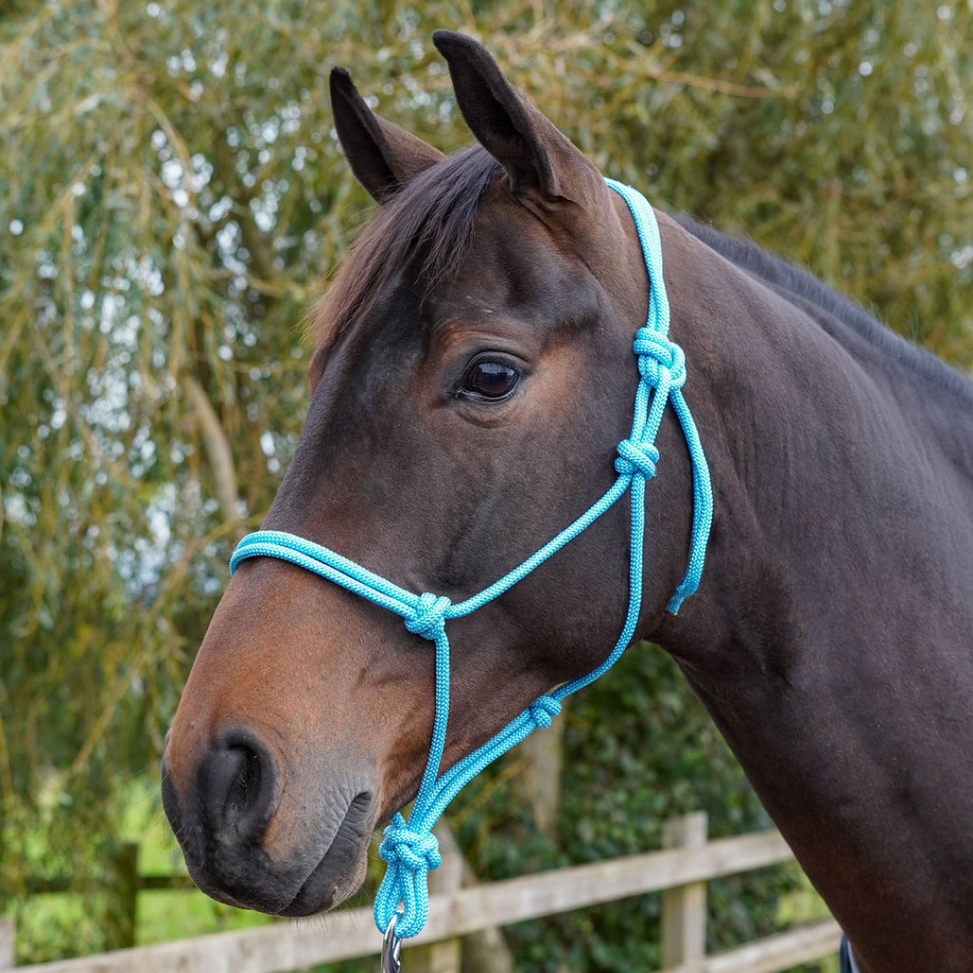 GS Equestrian Rope Halter; lightweight and simple to fit. Available in 10 different colours and 4 sizes.