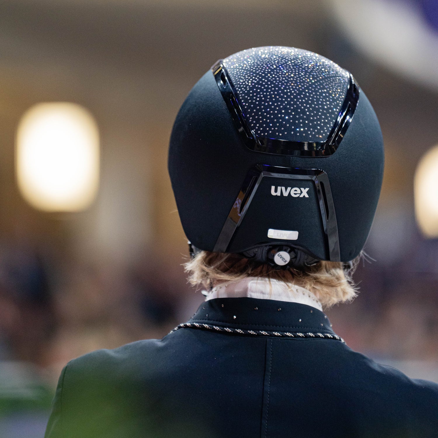 The Uvex Exxeed Flash helmet combines striking style with top-tier protection, featuring over 3,000 original Swarovski® crystals and a glossy piano-like finish. Its hardshell technology ensures uncompromising safety, while the satin black or navy covering adds a touch of elegance. Designed for comfort and performance, it includes integrated 3D IAS size adjustment and a vegan leather strap with an adjustable Y-divider for a perfect fit. Well ventilated and comfortable, this premium helmet lets you focus on your best performance with confidence and glamour.