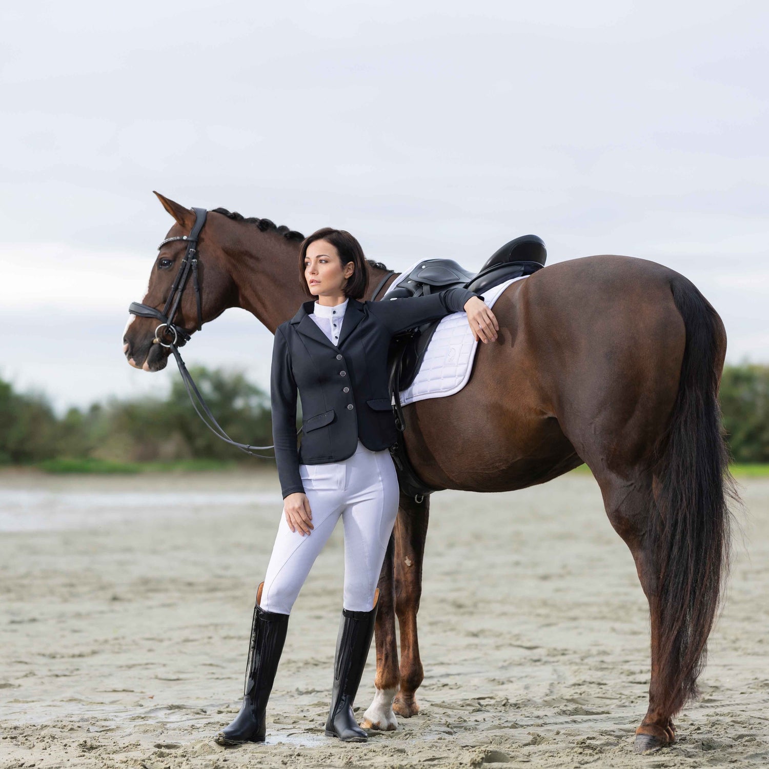Discover the perfect balance of comfort and functionality with the HKM Ladies Silicone Full Seat Riding Breeches -Amalfi-. Made with high-quality functional fibre, these breeches are quick-drying and prevent heat build-up, perfect for long rides. With bi-elastic fabric and a silicone full seat, enjoy maximum freedom of movement and support. The elegant design includes practical pockets and a premium Lauria Garrelli print trim.