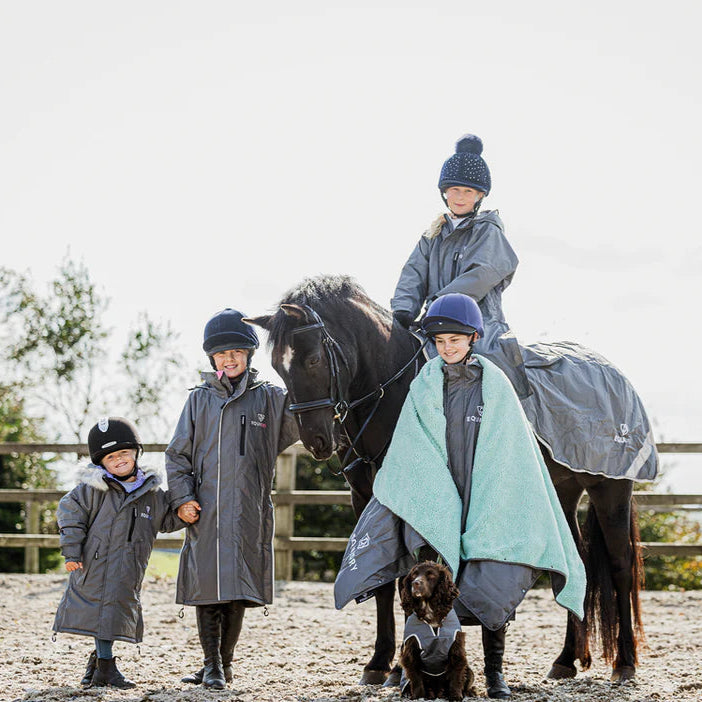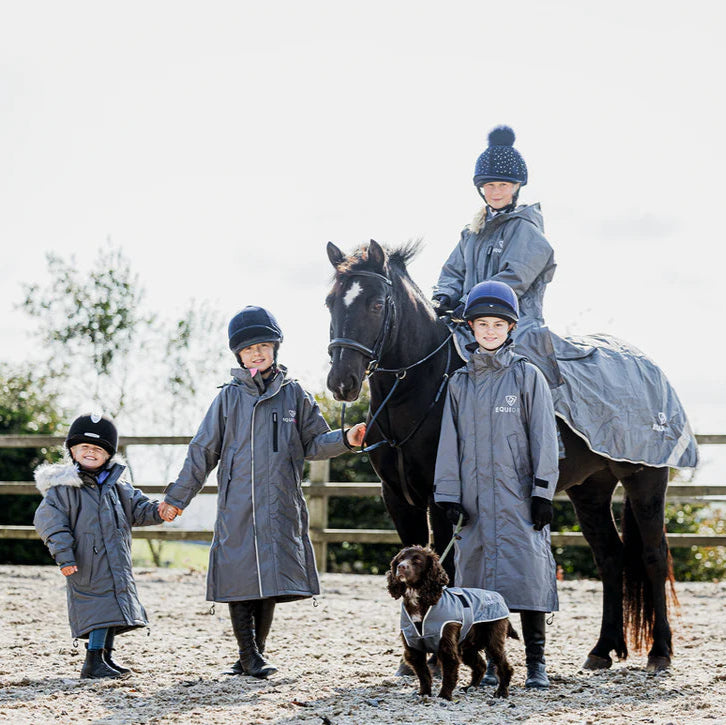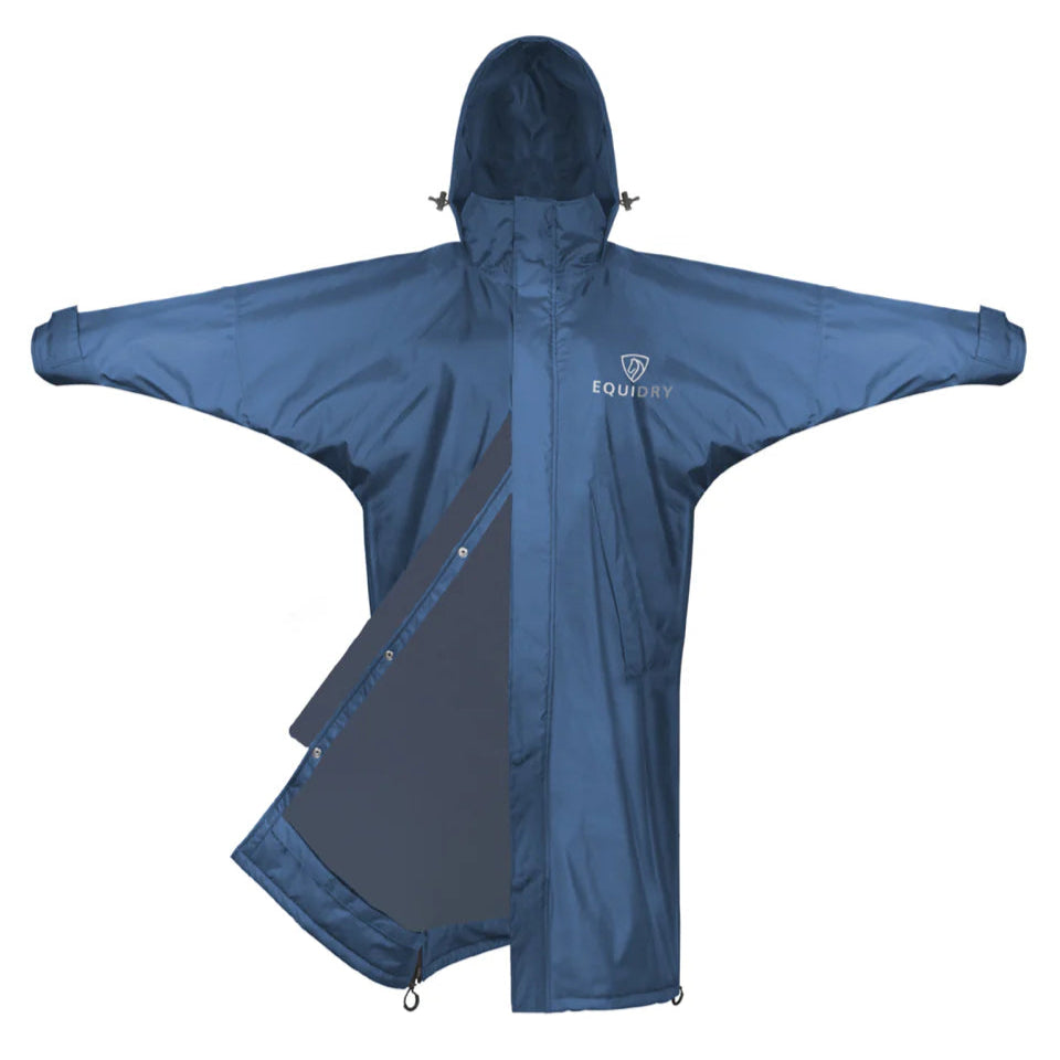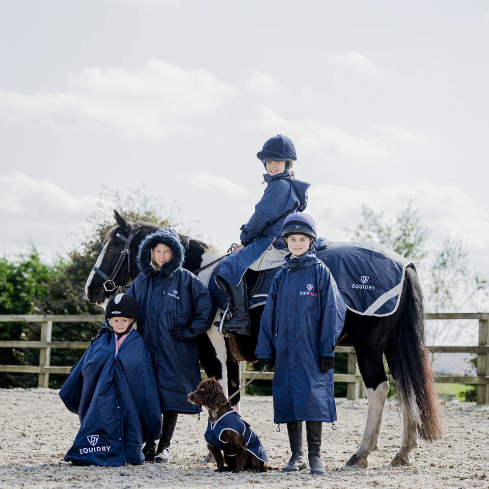 The EQUIDRY Children's Mesh Lined Evolution raincoat is perfect for spring and summer riding. With a breathable mesh lining and 10,000mm waterproof protection, it keeps young riders dry without overheating. The oversized, full-length design offers plenty of room for layers or a body protector, while the adjustable waist ensures a comfortable fit. A foldaway hood fits smoothly over most helmets and tucks away when not in use. Side zips with storm skirts provide extra leg coverage in the saddle, making this jacket both practical and comfortable for busy riders.