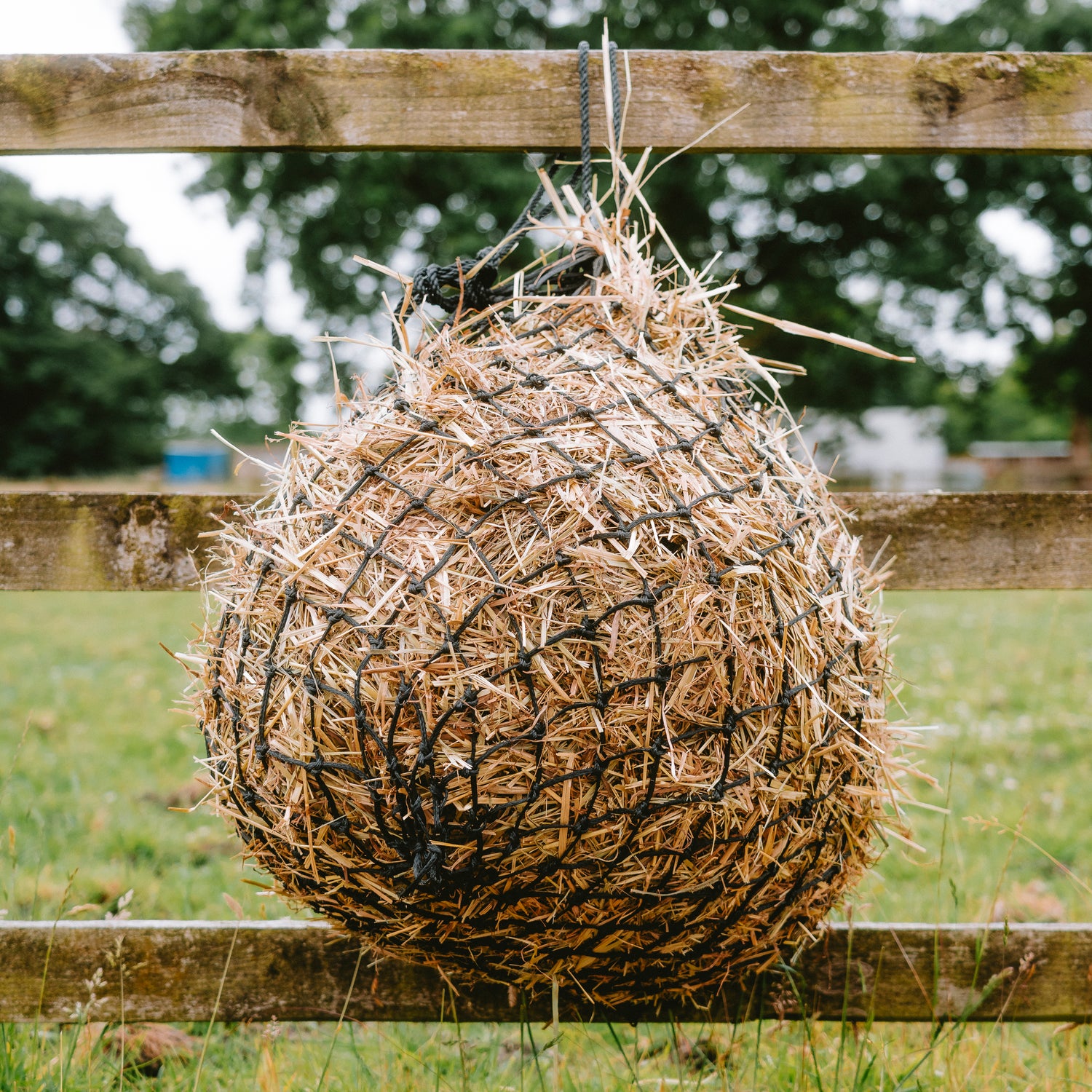 - Ein kleines Heunetz mit Löchern von 2 Zoll, das die gesunde Verdauung Ihres Pferdes fördert, indem es ihm ermöglicht, langsamer zu kauen und die Speichelproduktion zu erhöhen.