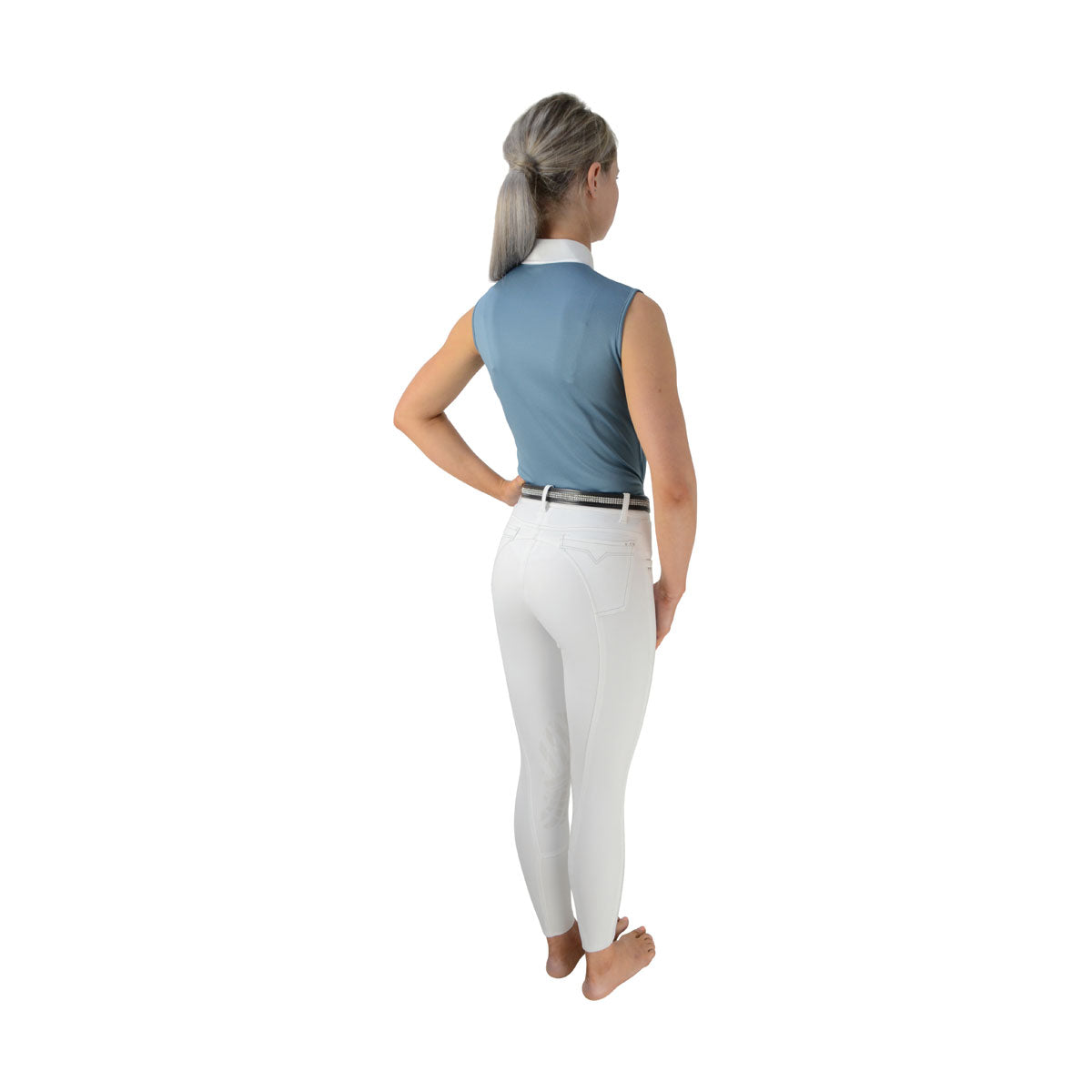 Dieses raffinierte Turniershirt ist wunderschön gestaltet und verfügt über fünf Kristalldruckknöpfe an der Halsleiste und eine kontrastierende weiße Farbe mit Seidenbesatzdetails. Das atmungsaktive ärmellose Shirt besteht aus dem führenden Hochleistungsstoff Dri-tex und weist Feuchtigkeit vom Körper ab, sodass es schnell trocknet und bequem sitzt. Für ein elegantes Finish ist das Hy-Logo in Silber auf die Brust gestickt.