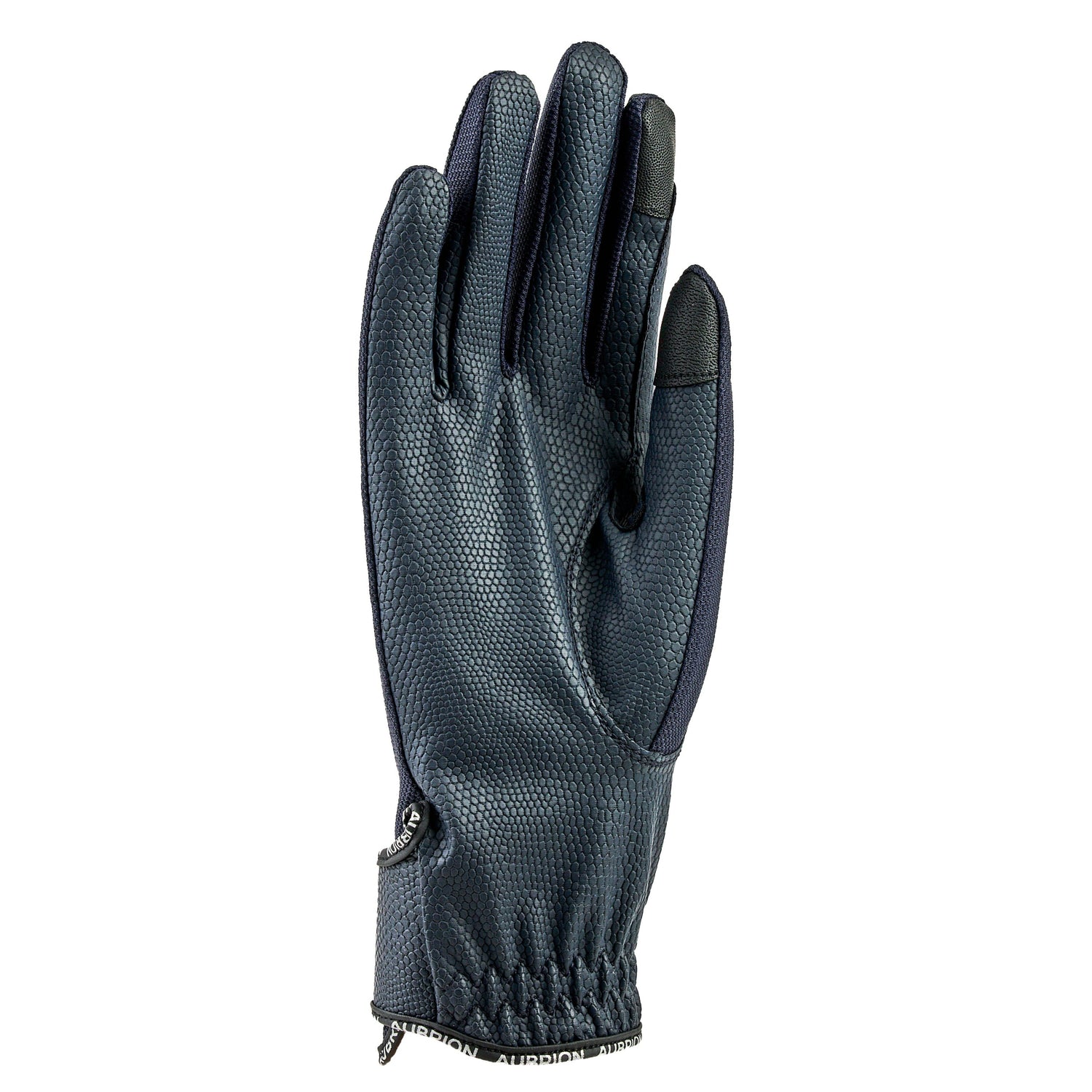 Touchscreen compatible thumb and forefinger tips enable use with smart devices. The articulated thumb gives freedom, finger reinforcements increase comfort and durability. Stretch wrist with non-scratch touch close fastenings. Finished with signature trims and a burnished Aubrion badge.
