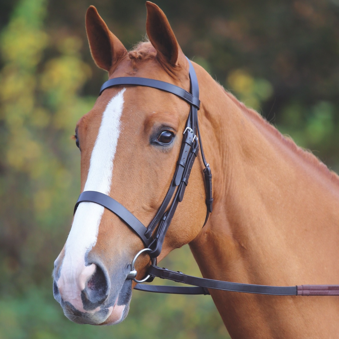 Das Shires Velociti GARA Plain Bridle verleiht dem Sortiment einen schlichten, klassischen Look und besteht aus herrlich weichem, geschmeidigem Leder mit einem flachen Nasenriemen und einem Stirnriemen für einen tollen Look. Dieses Zaumzeug wird auch mit Gummigriffzügeln geliefert.