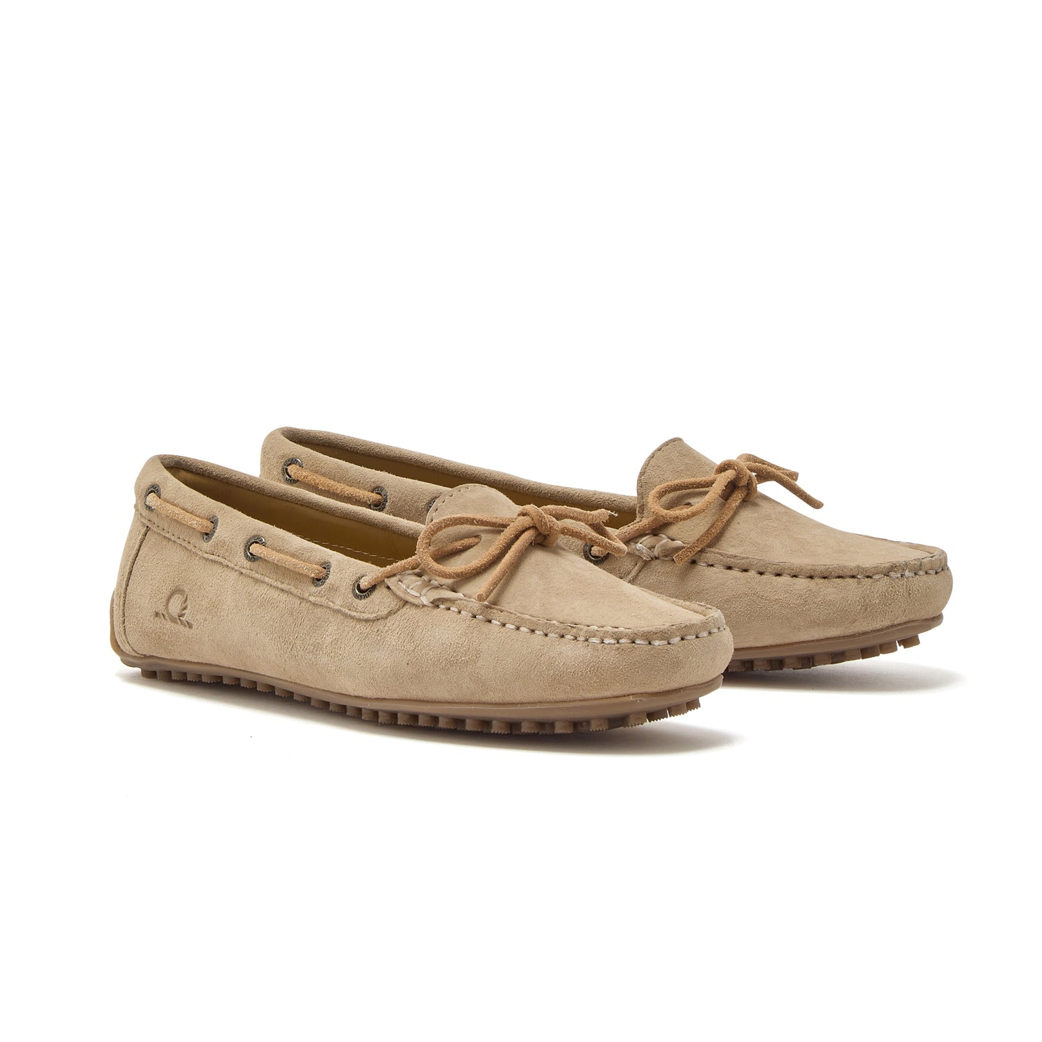 Expertly-crafted from premium, super-soft suede in seasonal sand, this effortless moccasin has classic loafer detailing, leather lacing, a full leather lining, Chatham tab detail and a non-slip, non-mark rubber sole.