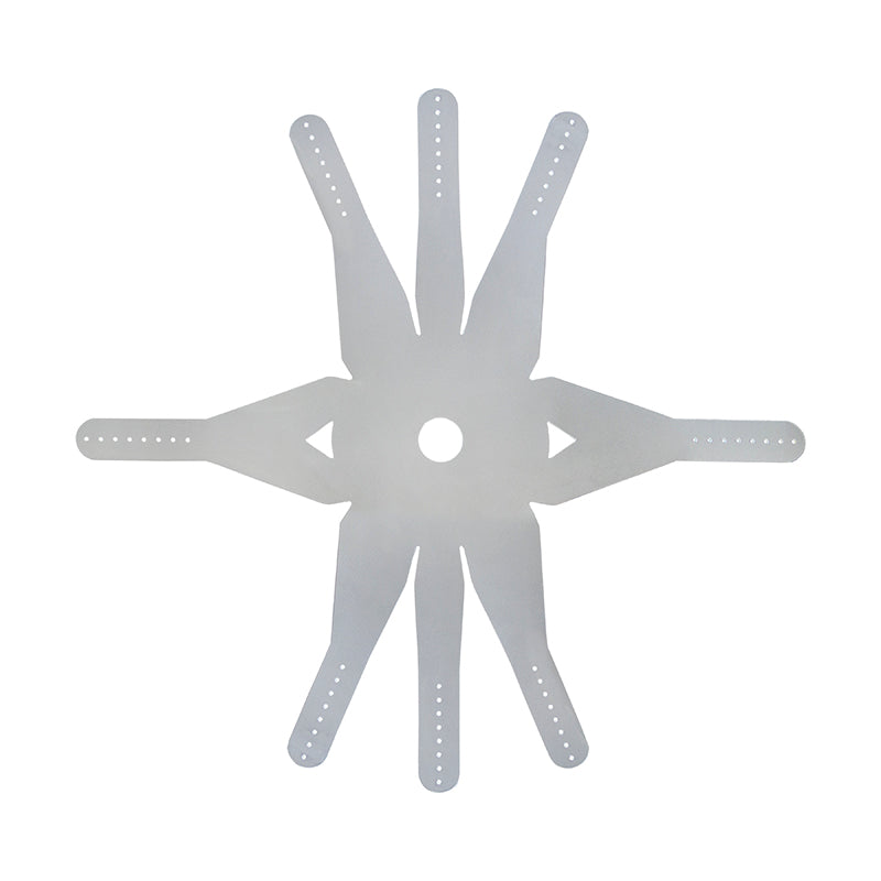 - Befestigen Sie zunächst jede ausgeschnittene Dreiecksrippe mit einem der beiliegenden flachen Kabelbinder. Wickeln Sie die Flossen nicht um das Halfter, da dies zu Reibungen führen kann.