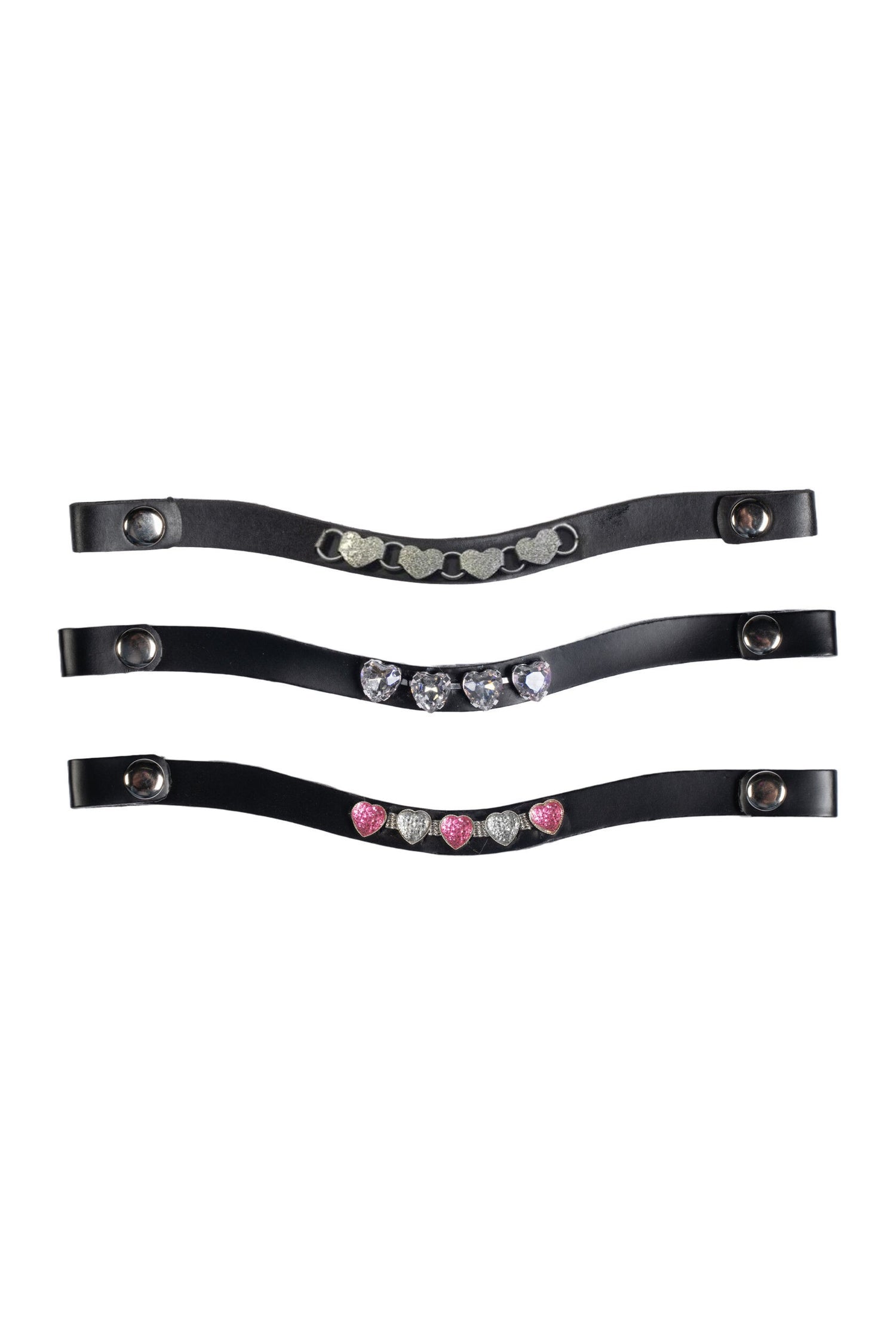 Enhance your hobby horsing experience with the HKM Browbands set of 3. Enjoy easy handling with the pressure cap feature, while the leather imitation/artificial leather material adds durability. Compliant with European toy guidelines, this set is suitable for the popular Hobby Horse models and is designed for ages 3 and up.