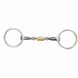 Die lockere Ringbacke hat eine größere Beweglichkeit als eine feste Backe, sodass sie dem Winkel der Zunge folgen kann, was Fixieren und Vorbeugen erschweren kann. Die losen Scheiben aus Messinglegierung in der Mitte können dazu beitragen, ein wählerisches Pferd zu beruhigen.