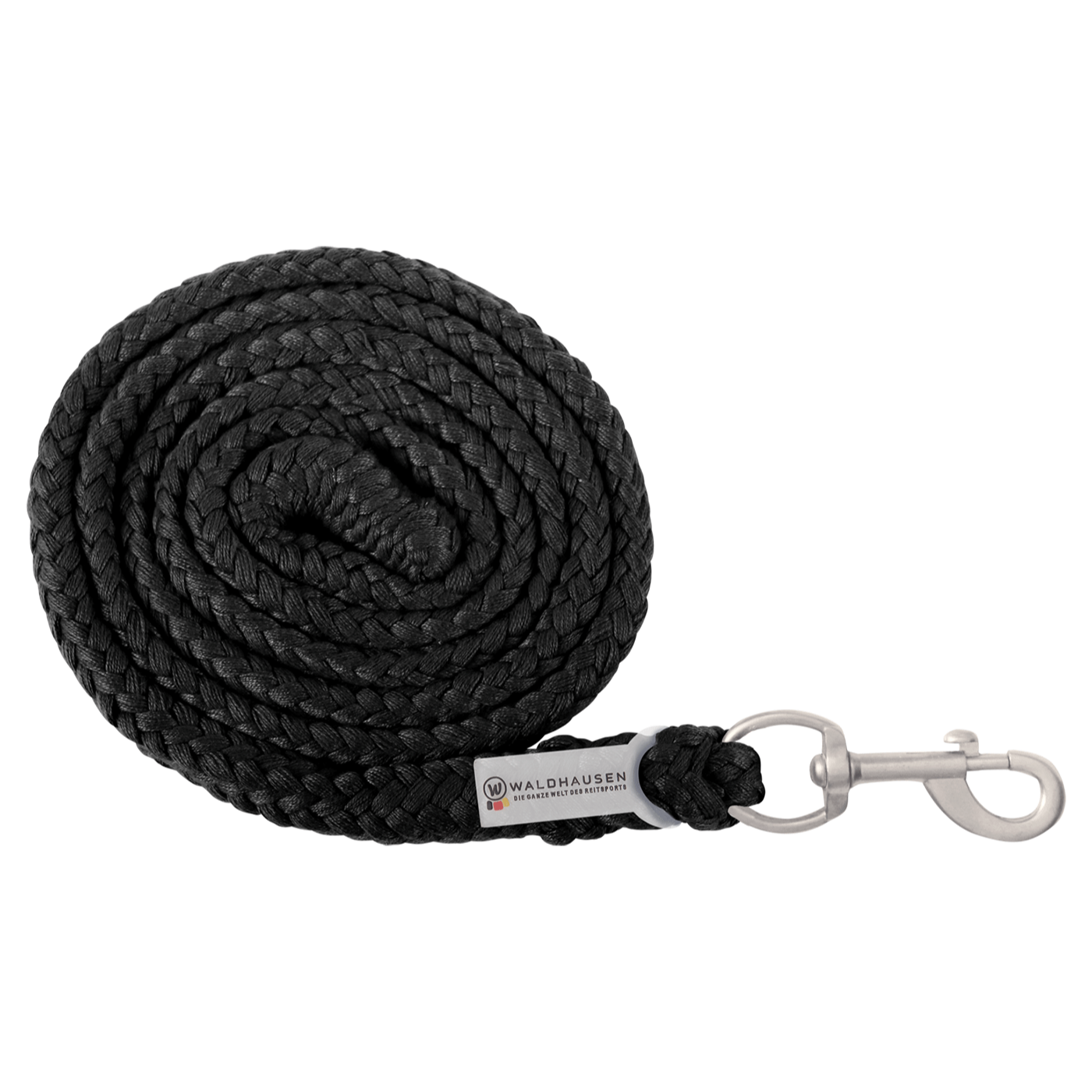 The Waldhausen Snap Hook Lead Rope Plus boasts high-quality fittings, including a snap hook and dark fittings. It also features a braided design and a top-quality lead rope, with a length of approximately 2.0 m.