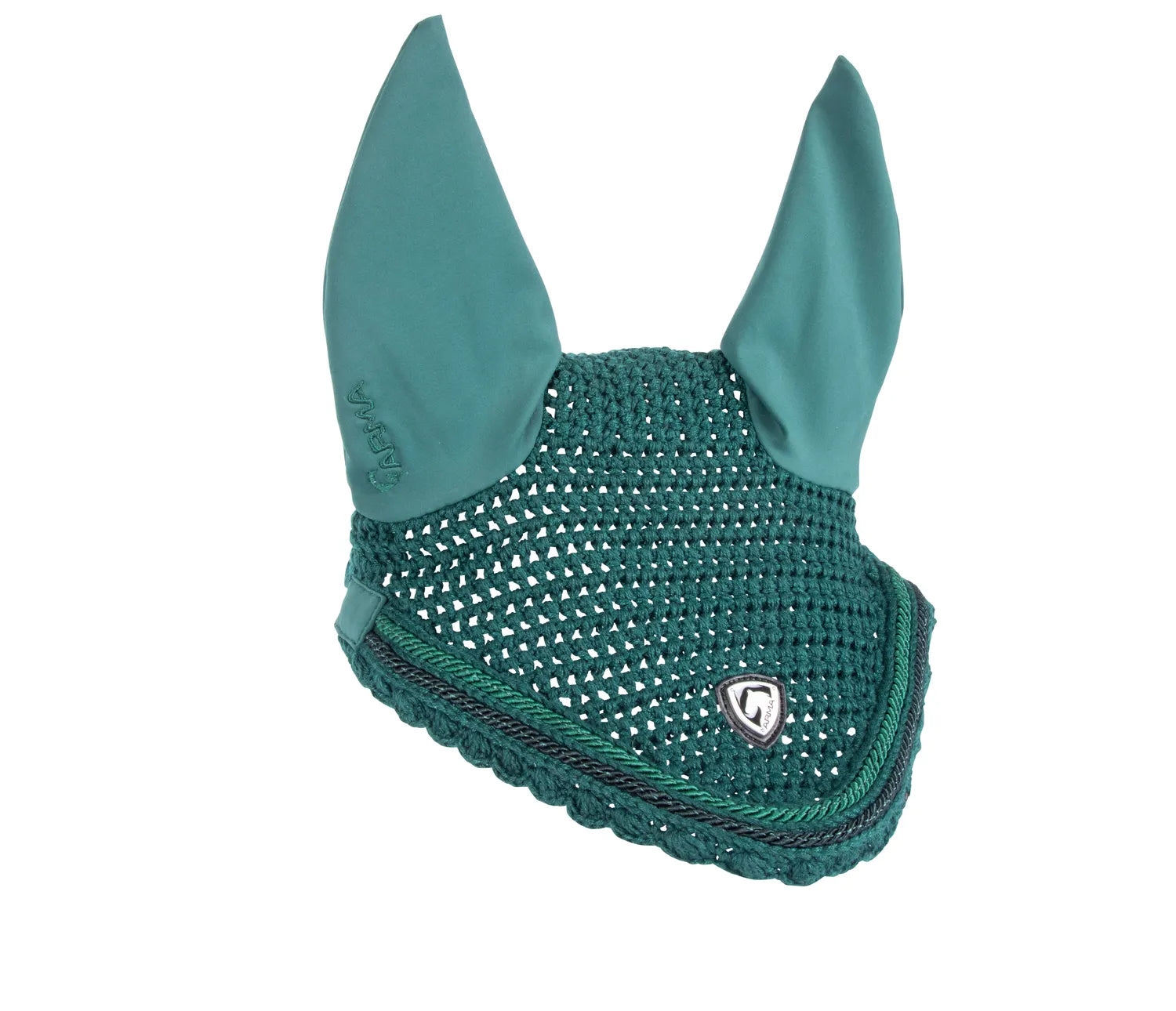 The crochet hood allows free air flow to prevent heat build up, stretch ears are highly breathable and block biting insects. Designed to be worn under a bridle. Smartly trimmed and featuring a smart ARMA emblem badge.