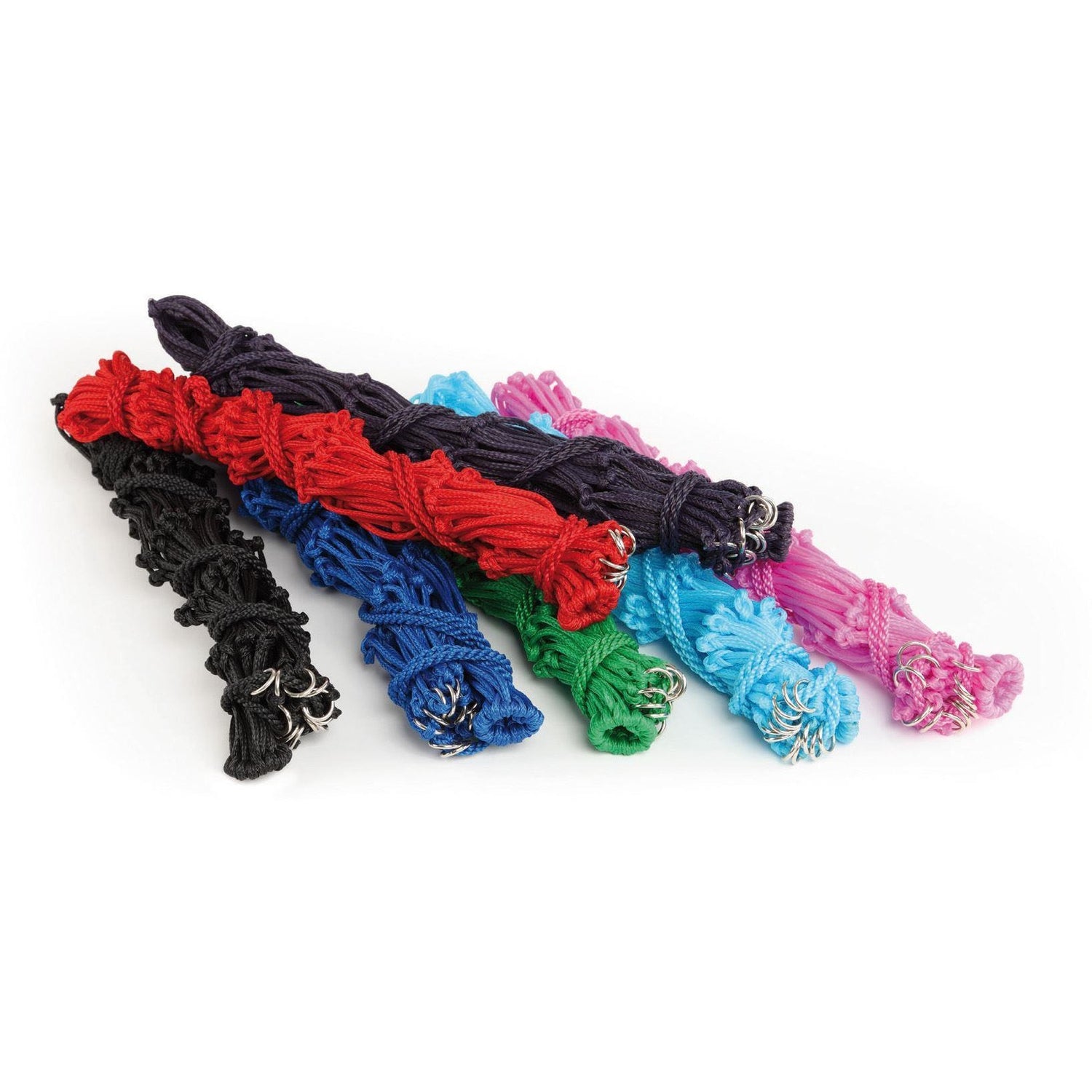 Filet à foin en nylon extra résistant avec des trous plus grands et des anneaux métalliques. Taille des mailles 10 cm (4") Capacité 6,5 kg