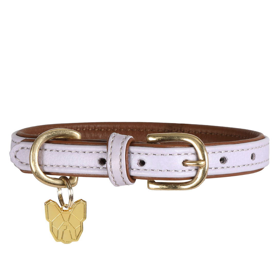 Une gamme colorée réalisée en cuir plié et doublée de cuir souple rembourré pour plus de confort. Le collier pour chien en cuir rembourré est doté d'une boucle et d'un anneau en D de couleur laiton ainsi que de l'étiquette Digby & Fox.