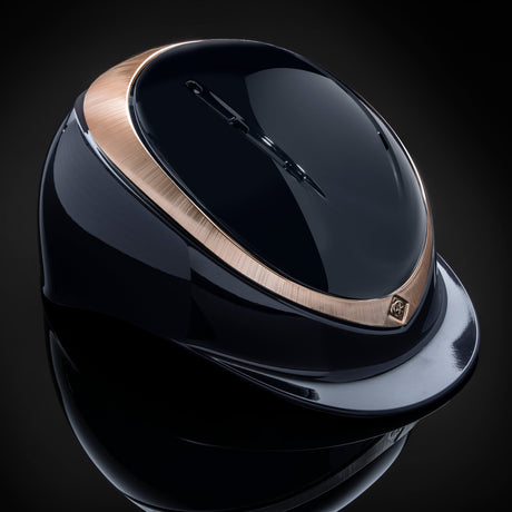 Prix habituel De $5,057.00Prix unitaire /IndisponibleCharles Owen Halo Luxe Wide Peak Navy/Rose Gold Gloss Riding Hat