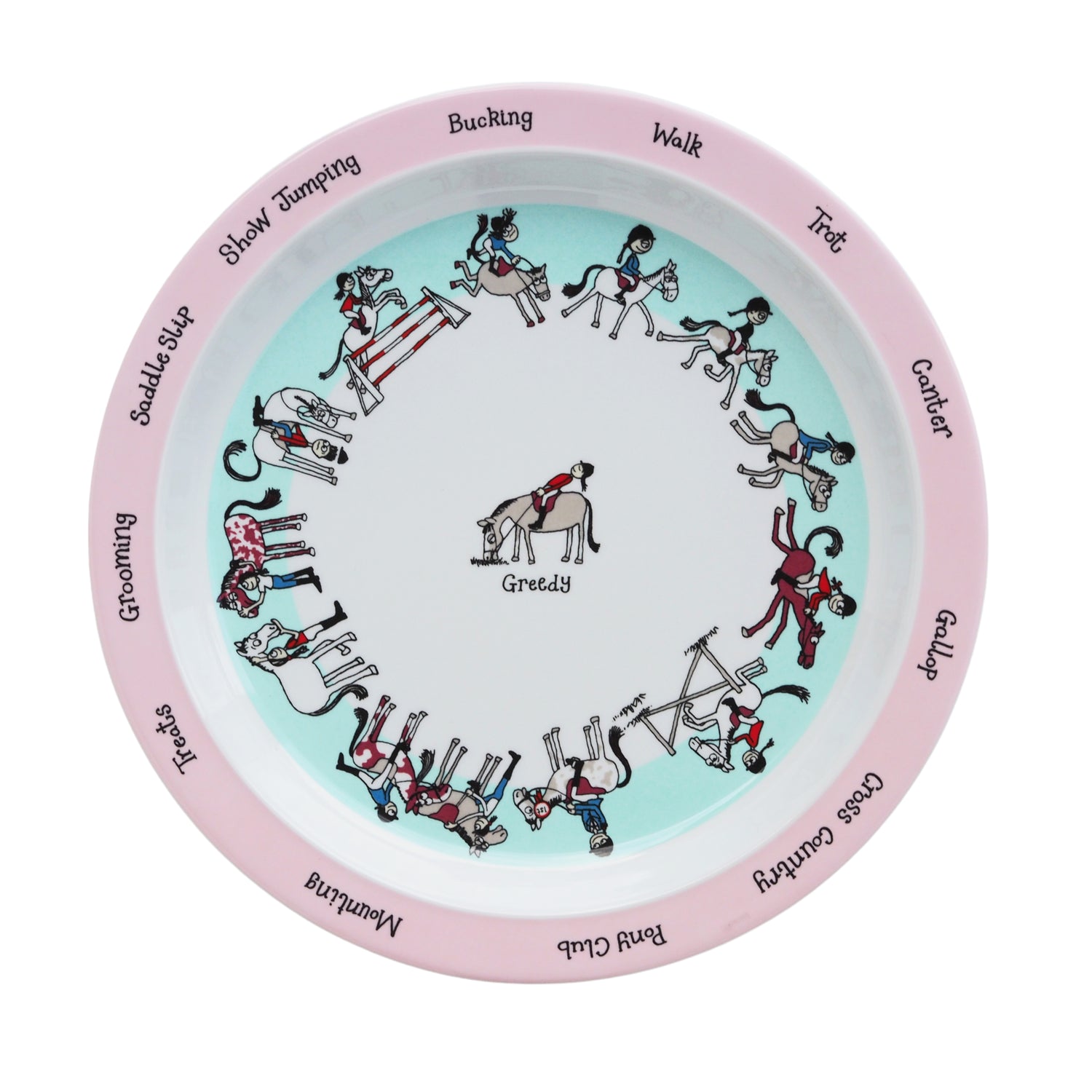 Hy Equestrian have teamed up with Tyrrell Katz to bring you an adorable range of children's tableware! This plate is adorned in fun horse illustrations to make dinner times fun! Perfect for at home or to take to camps and stay away shows. Dishwasher safe, made from 100% Melamine and BPA free too.