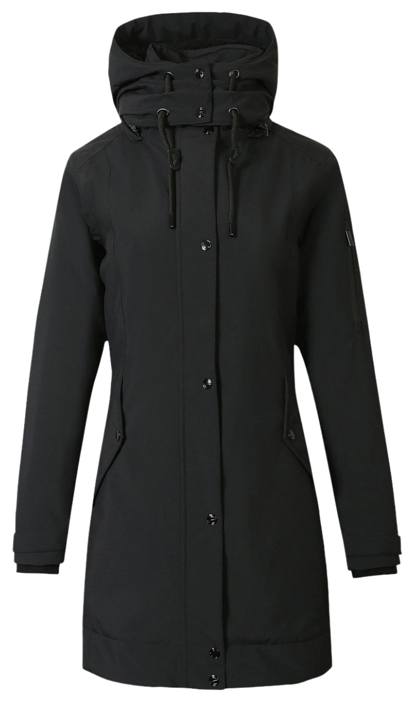 The Covalliero Ladies Parka features a plush teddy fleece lining for optimal cold protection, along with a high collar and adjustable hood for a snug fit. Its elastic outer material allows for unrestricted movement, while the hood can be secured with a button or removed with a zip fastener. The jacket also includes adjustable cuffs, a feminine, fitted silhouette, and multiple pockets for convenience. Additionally, it boasts exceptional water resistance and breathability, making it a top choice for outdoor activities.