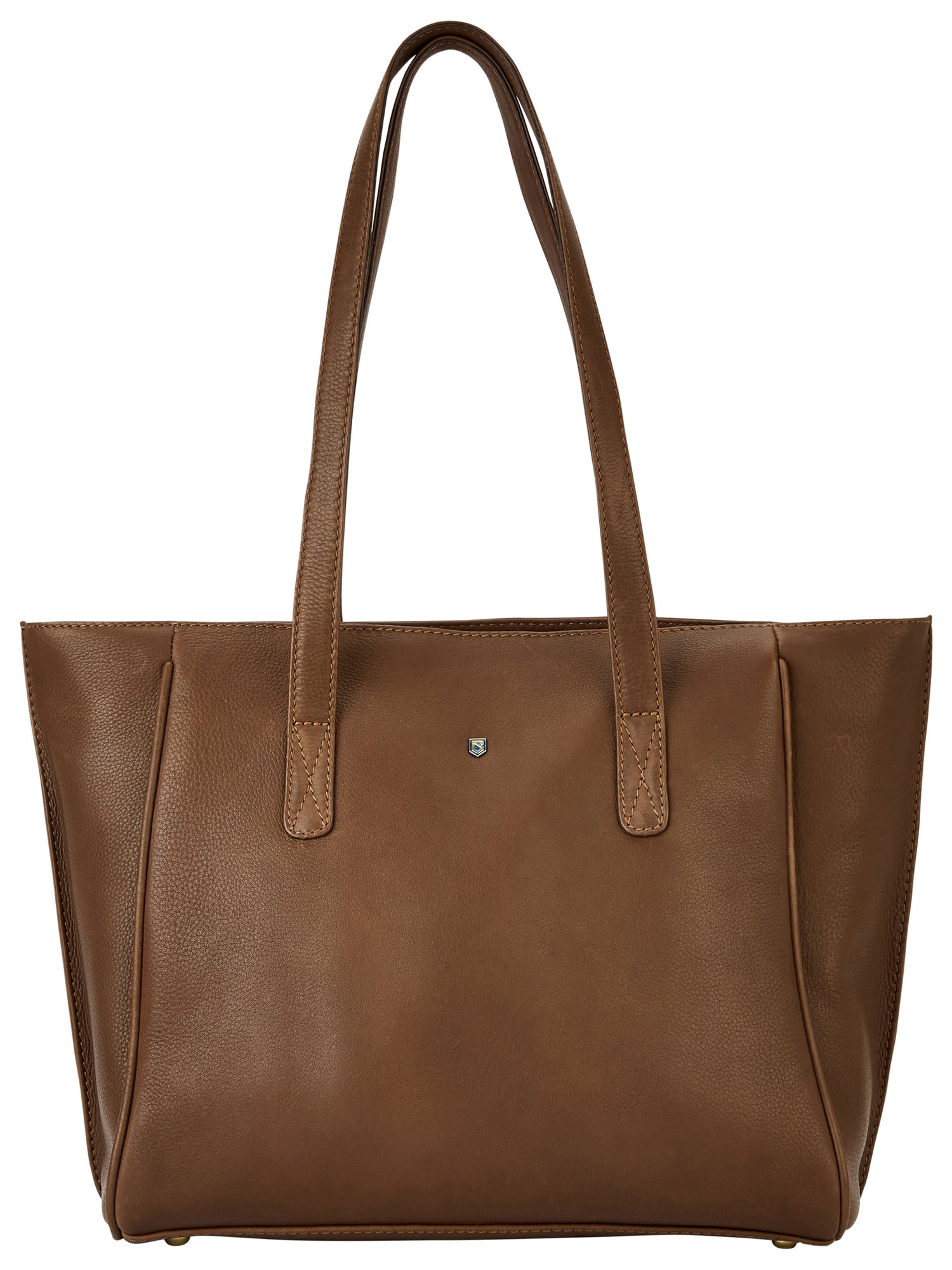 Luxury women's leather tote bag made from premium leather with internal pocket and large shoulder strap.