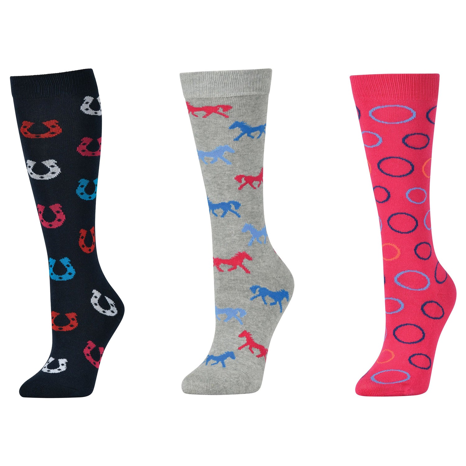 Ajoutez du plaisir et de la couleur à votre tenue d'équitation avec les Dublin 3 Pack Socks Childs, ces paquets de chaussettes hautes ajoutent de la couleur et du confort à n'importe quelle tenue, fabriqués à partir d'un coton extensible naturellement respirant, vos pieds resteront à l'aise toute la journée. Un pack de 3 paires de chaussettes aux motifs assortis.