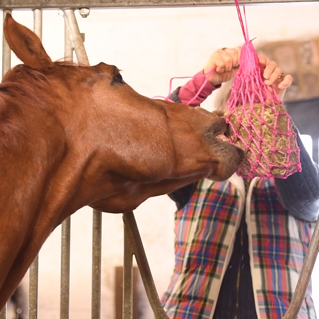 L'Equilibrium Munch Net est un petit filet à foin troué qui vous permet d'utiliser vos blocs de fibres Vitamunch ou Calmunch lorsque vous voyagez avec votre cheval dans le box ou la remorque. Placer les blocs à grignoter dans les filets Equilibrium Munch signifie également que vous pouvez utiliser les blocs pendant que votre cheval est attaché dans la cour pour le maréchal-ferrant, le vétérinaire, le physio ou simplement pour un palefrenier et ils seront occupés tout en obtenant une excellente collation saine. .