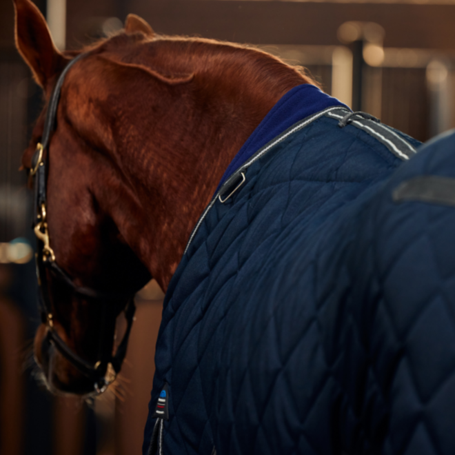 The diamond quilted 1000 denier outer delivers exceptional durability and protection, while the 220g polyfill offers superior warmth with a sleek, polished appearance. Thoughtful details like the Cozi-Cuff neck collar and memory foam wither relief pad enhance comfort by minimising rubbing and pressure, ensuring long-lasting wearability in the stable.