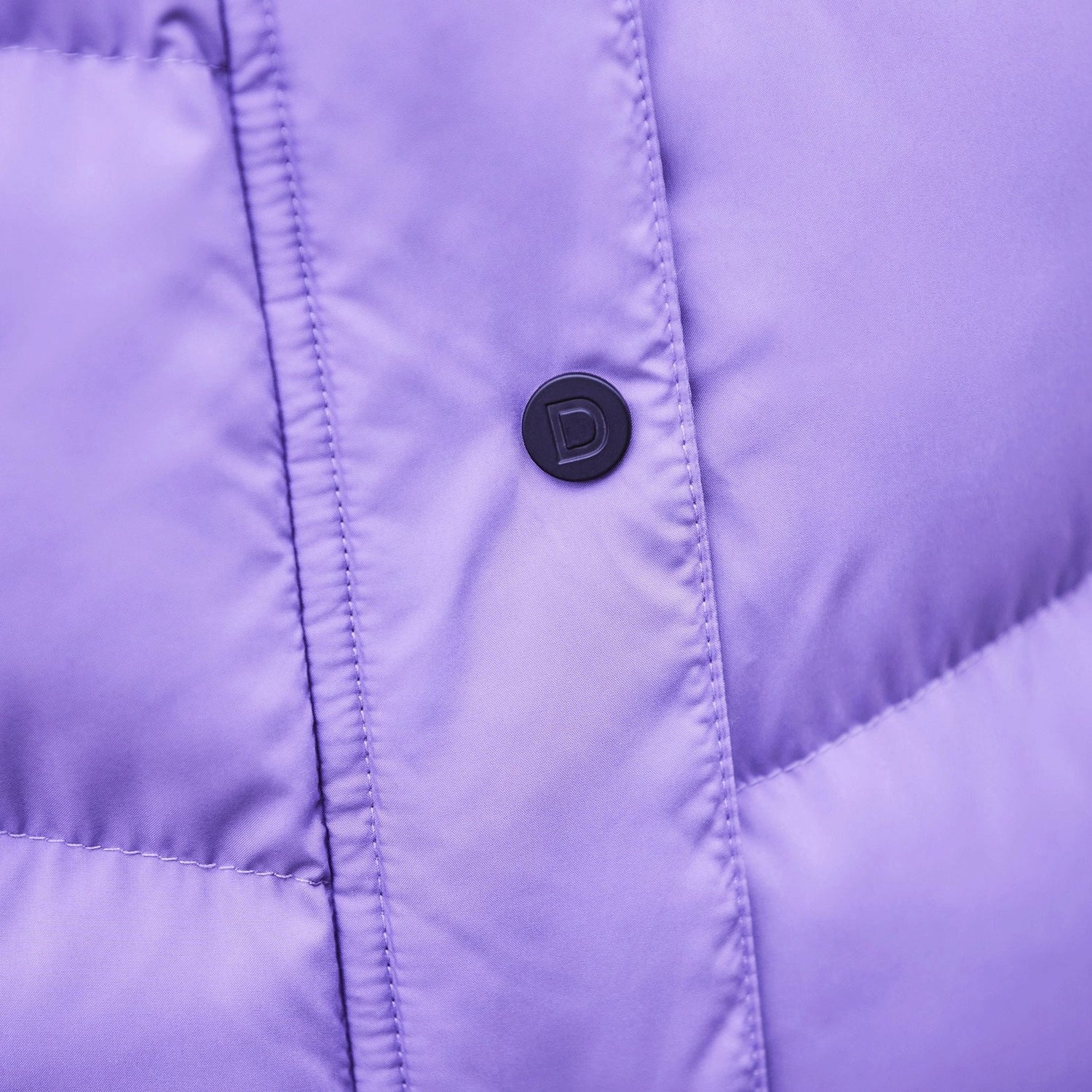 - Double ended front zip and placket finished with metallic press studs.