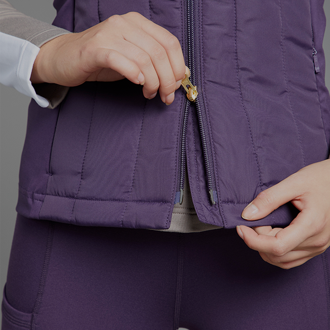 valuables safe and the quilted, shaped stitching flatters the figure. Also featuring gold trims and a 2-way YKK zip for added versatility