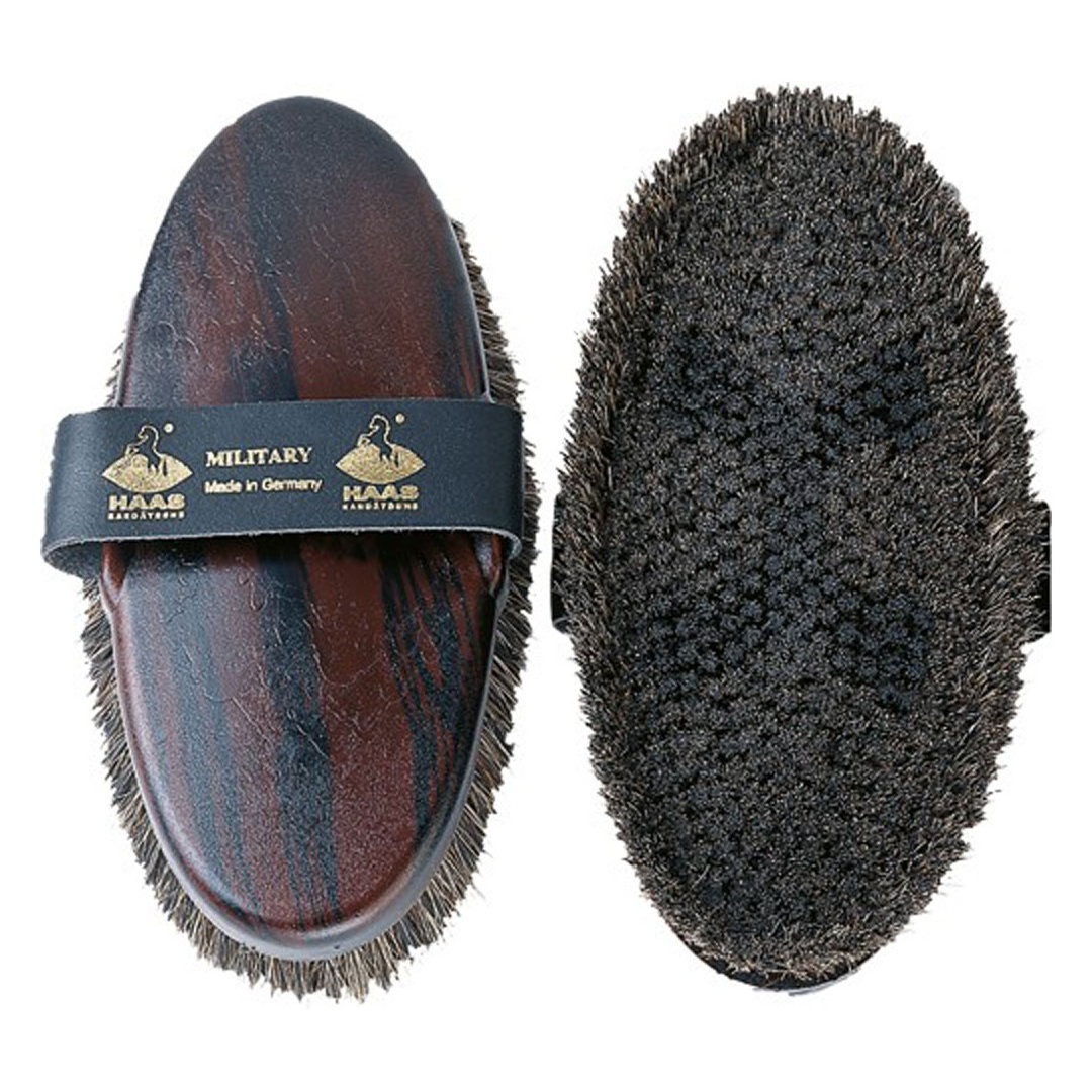 Haas Brushes Military - Les poils plus courts et plus résistants permettent un effet de nettoyage en profondeur, tandis que les poils plus longs éliminent la saleté et améliorent la brillance.