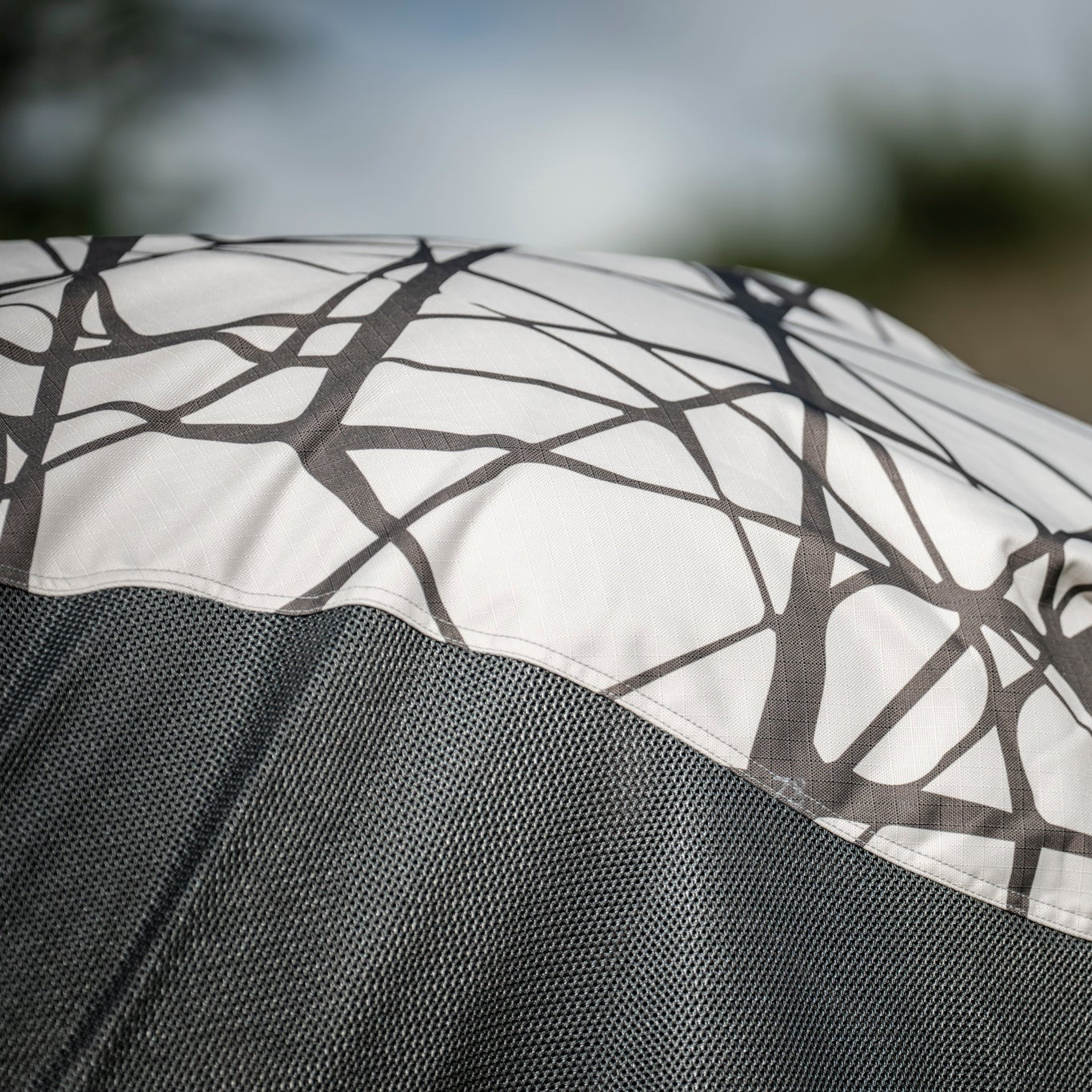 - Le motif brise la forme du cheval. Les insectes ont du mal à identifier le cheval comme une cible et ne peuvent pas savoir où atterrir. Combine les caractéristiques d'une couverture légère et d'une toile anti-mouches en une seule. Le motif monochrome peut être un moyen simple de protéger les chevaux en aidant à dissuader les mouches de se poser sur leur corps.