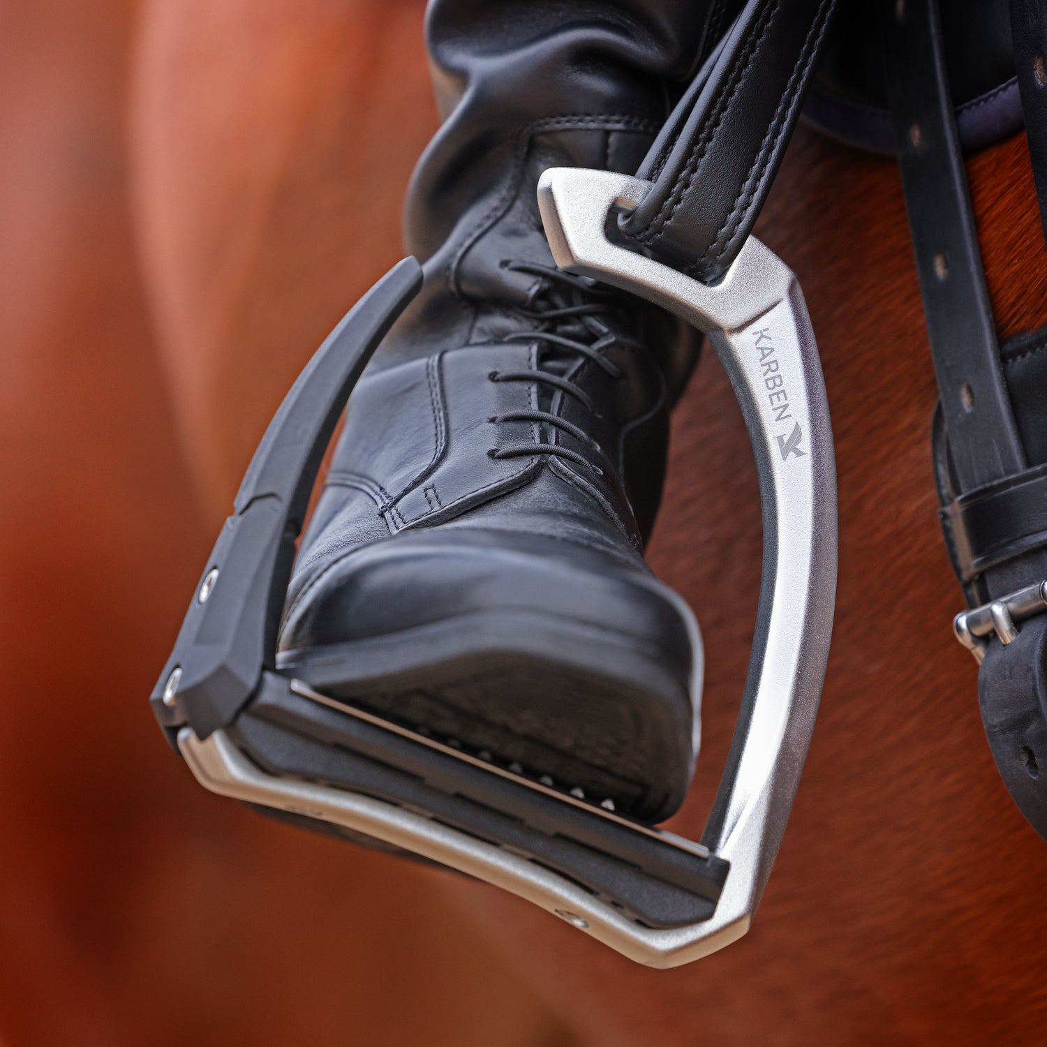 Thoughtfully proportioned and carefully balanced, the Shires Karben Ultra Grip FX Stirrup combines attractive aesthetics with reassuring safety benefits.