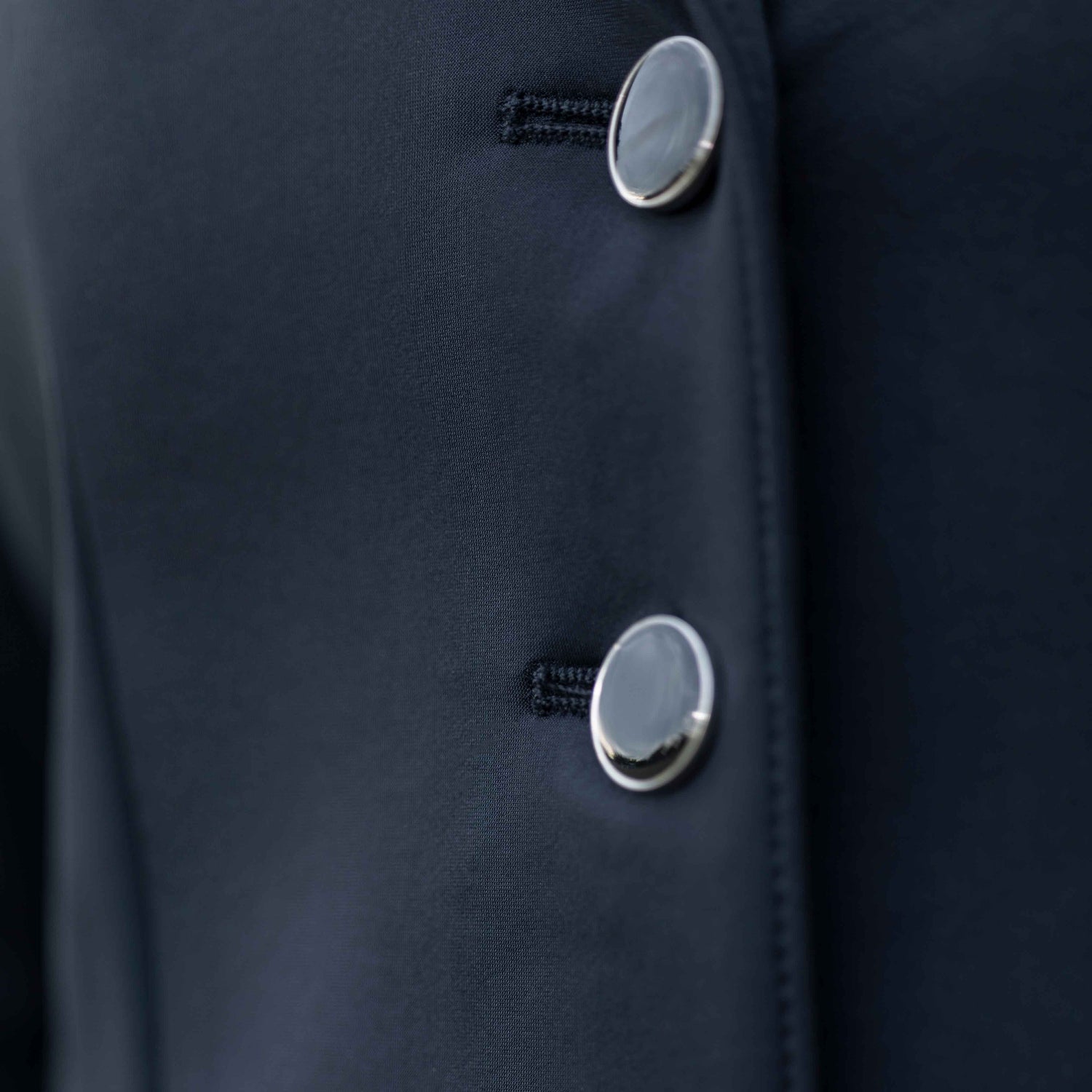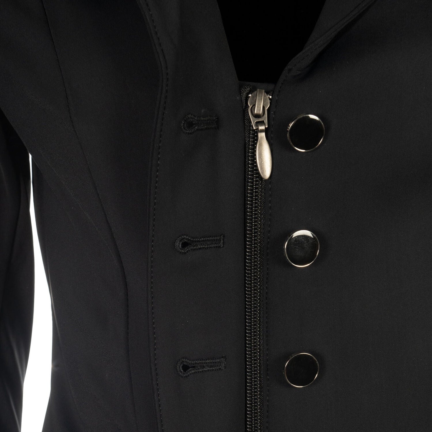 The HKM Children's Competition Jacket combines elegance and function. Made with crease-resistant material and a dirt-repellent surface, it always looks flawless and is easy to care for. Its rhinestone accents and hidden zipper add style, while riding slits and practical pockets provide comfort and freedom of movement.
