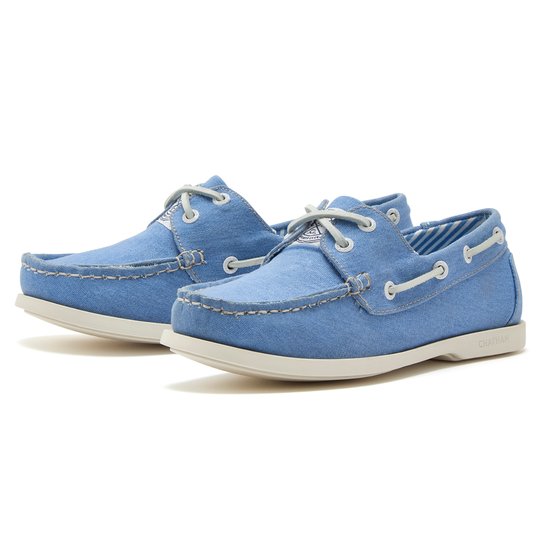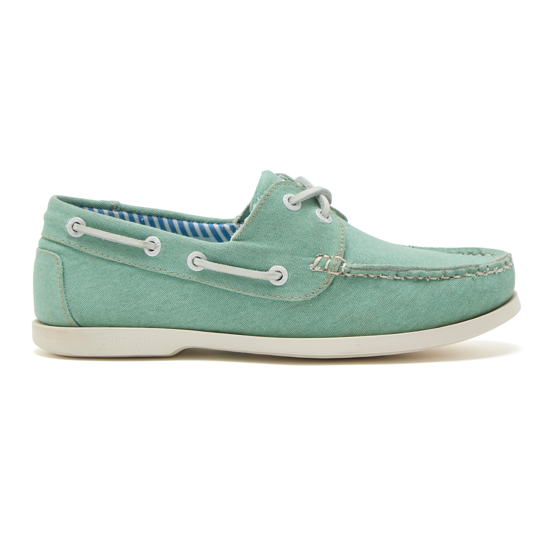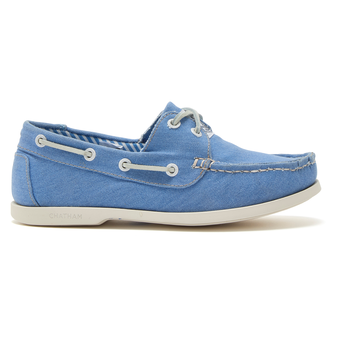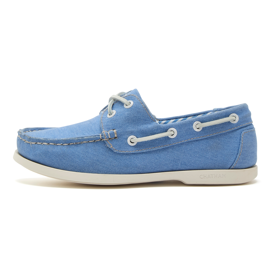 Beautifully-made from soft and comfortable stretched canvas, they have a full moccasin construction for an optimal fit and are hand stitched on the last. They feature one-piece white leather lacing, contrast stitch detail, a nautical-inspired striped fabric lining, and a non-slip white rubber sole.