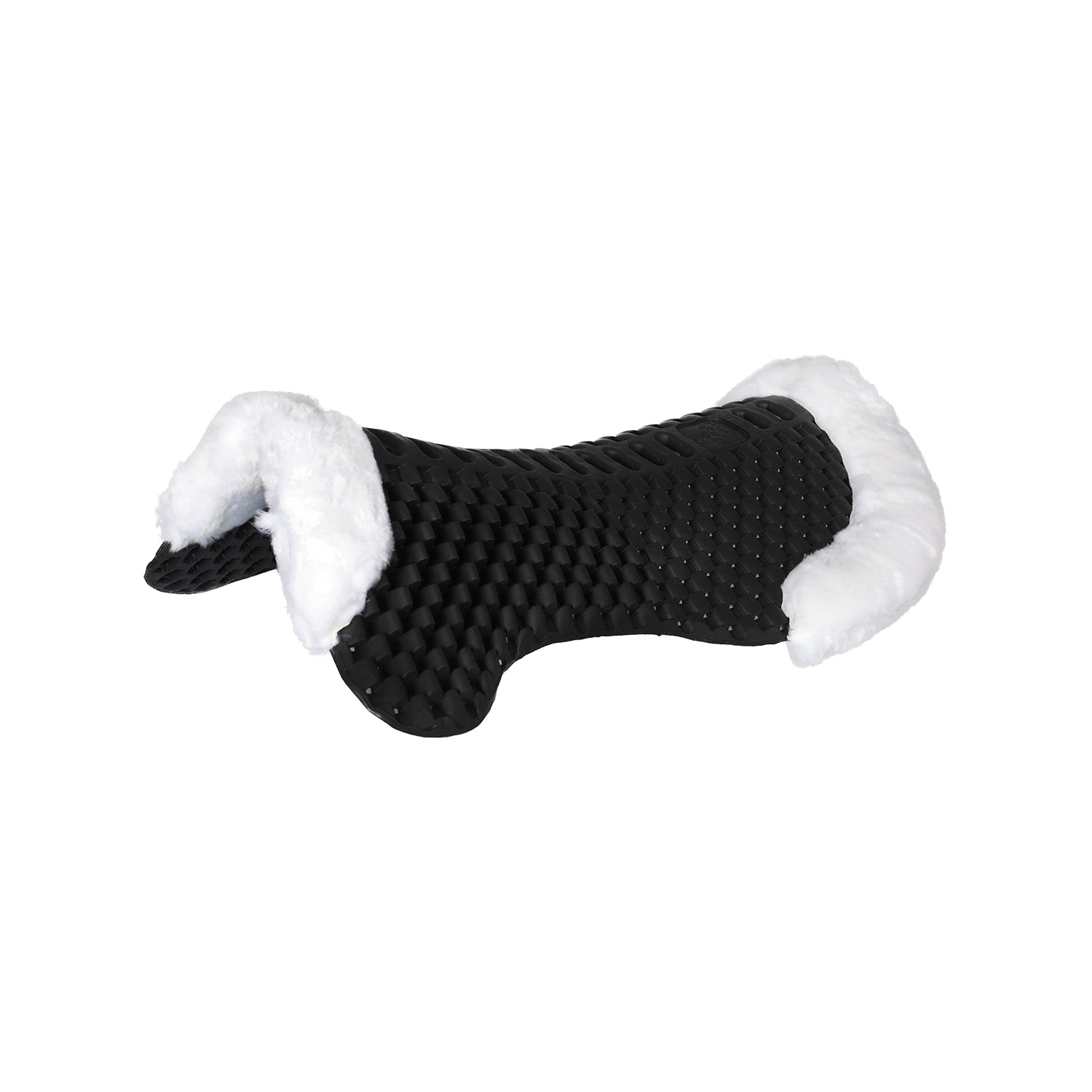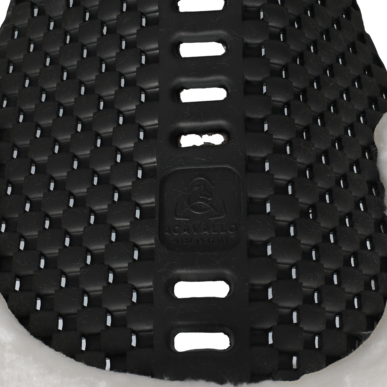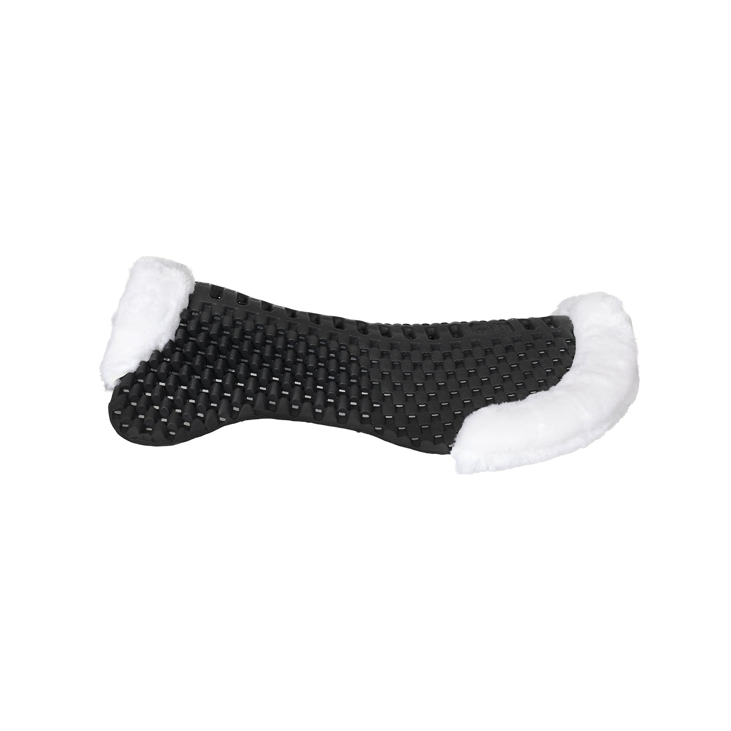 The Acavallo Piuma-FS Respira pad features a cut-out faux sheepskin and an EVA front riser, expertly engineered to provide targeted lift in the withers area. Crafted from lightweight EVA, a thermoplastic material, it offers superior cushioning with minimal bulk beneath the saddle. Its innovative design includes numerous small bulges with lateral holes, enhancing ventilation and airflow to keep the horse’s back cool and comfortable. This pad combines technical performance with synthetic sheepskin comfort, making it an ideal choice for riders seeking effective support and breathability.