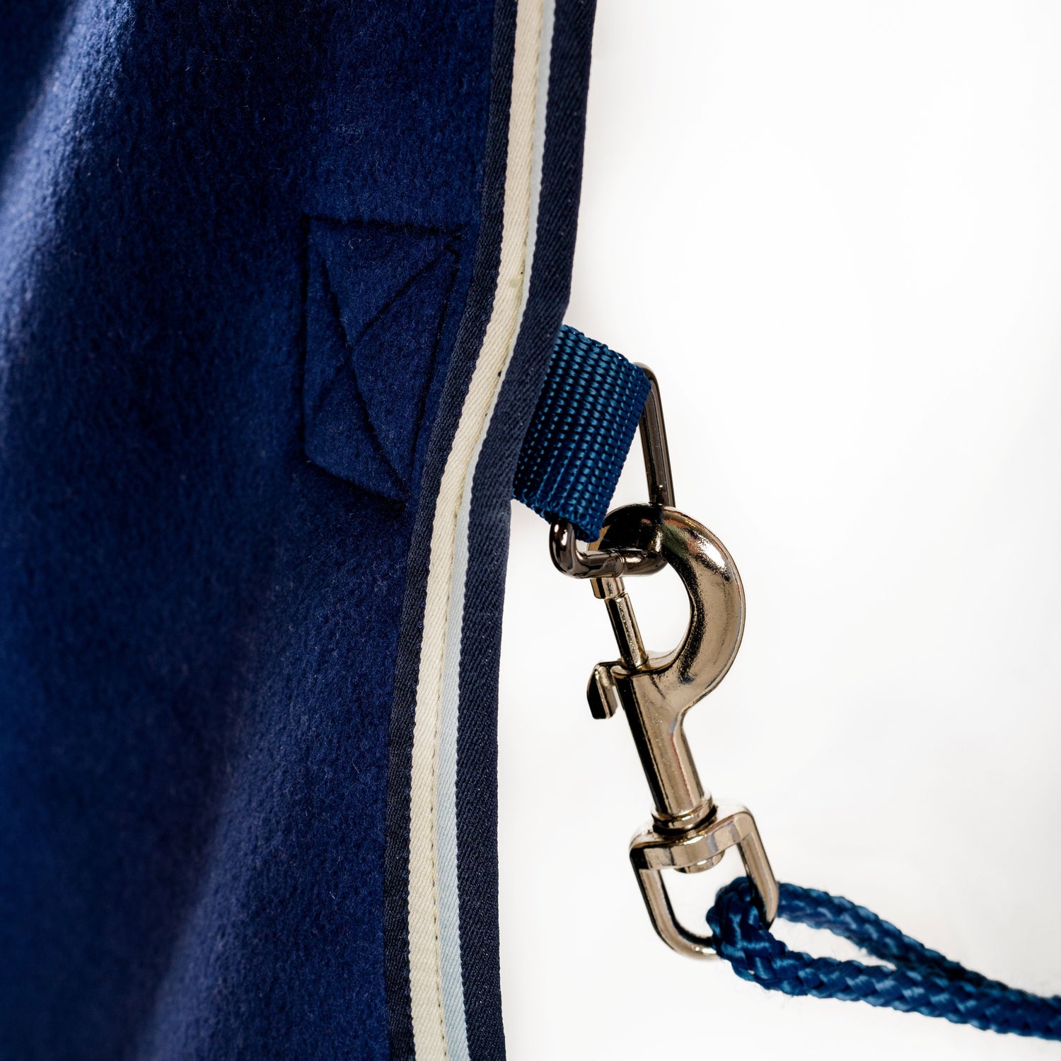 The Horseware Newmarket Cosy Fleece Cooler is designed for comfort and functionality. Made from breathable, moisture-wicking fleece, it helps regulate temperature and keep the horse dry. The detachable surcingles provide a secure fit, while the tail strap and string ensure the rug stays in place. A straight front closure allows for easy fastening.
