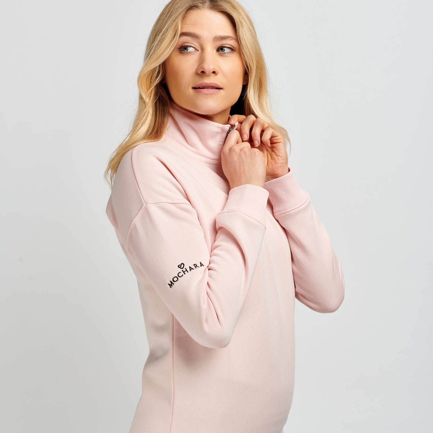 This stylish half zip sweatshirt is crafted from a cosy, soft cotton material with a plush, fleecy lining. Its figure-hugging fit makes the Mochara White Half Zip Sweatshirt ideal for layering up for warmth during outdoor activities, fitness sessions, or for relaxed, comfortable wear at home. True to size, though those who prefer a more relaxed fit may wish to opt for a larger size.