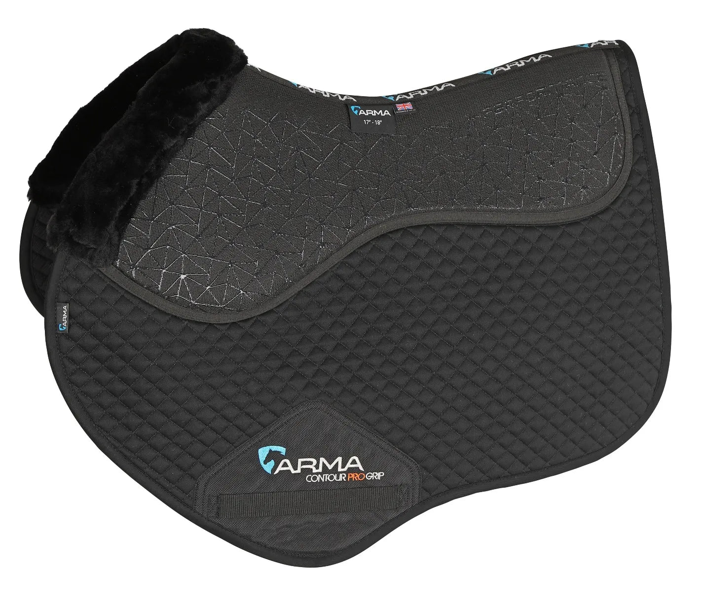Combining silicone grips with a shock absorbing lining, the technical ARMA fusion jump saddlecloths are formulated and cut for high performance. Silicone grip prints to the upper saddle area, shock absorbing soft grip half lining. Breathable stay-smart anti-pill 100% cotton outer.