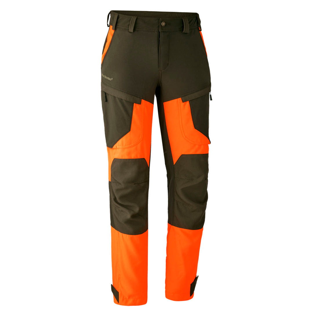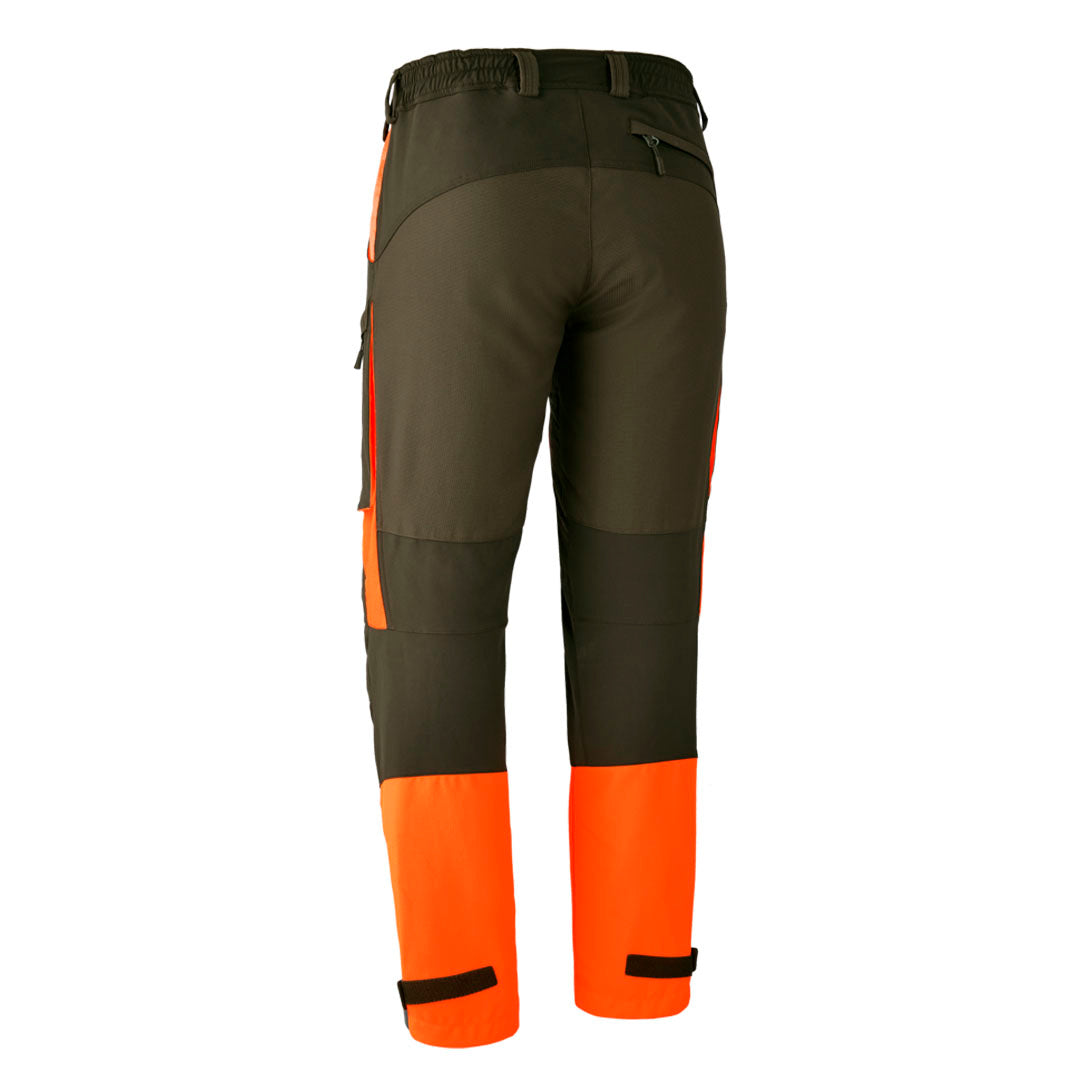 Designed with a vibrant orange, green mix to ensure safety, which is a key aspect of any hunting activity. The pre shaped knees, elasticated waist, 4-way stretch areas and adjustable ankles with strap and Velcro permit a comfortable fit while maintaining manoeuvrability.