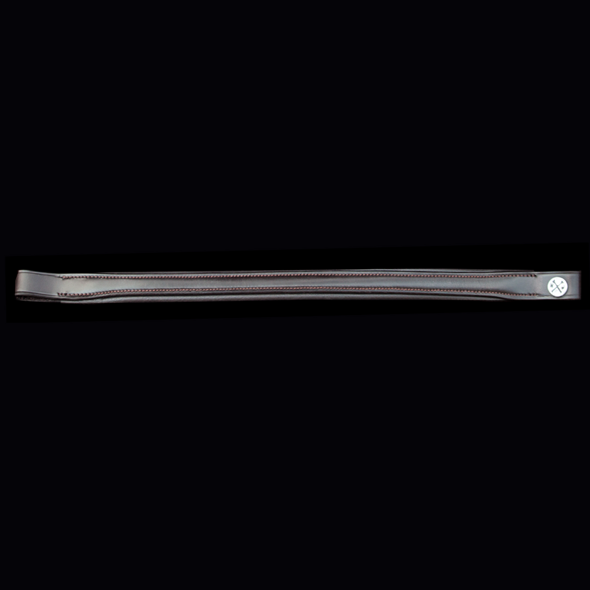 The Henry James Straight Browband is made of high-quality English Sedgwick leather, featuring a soft padded back and an elegant Henry James logo for a polished and sophisticated aesthetic.