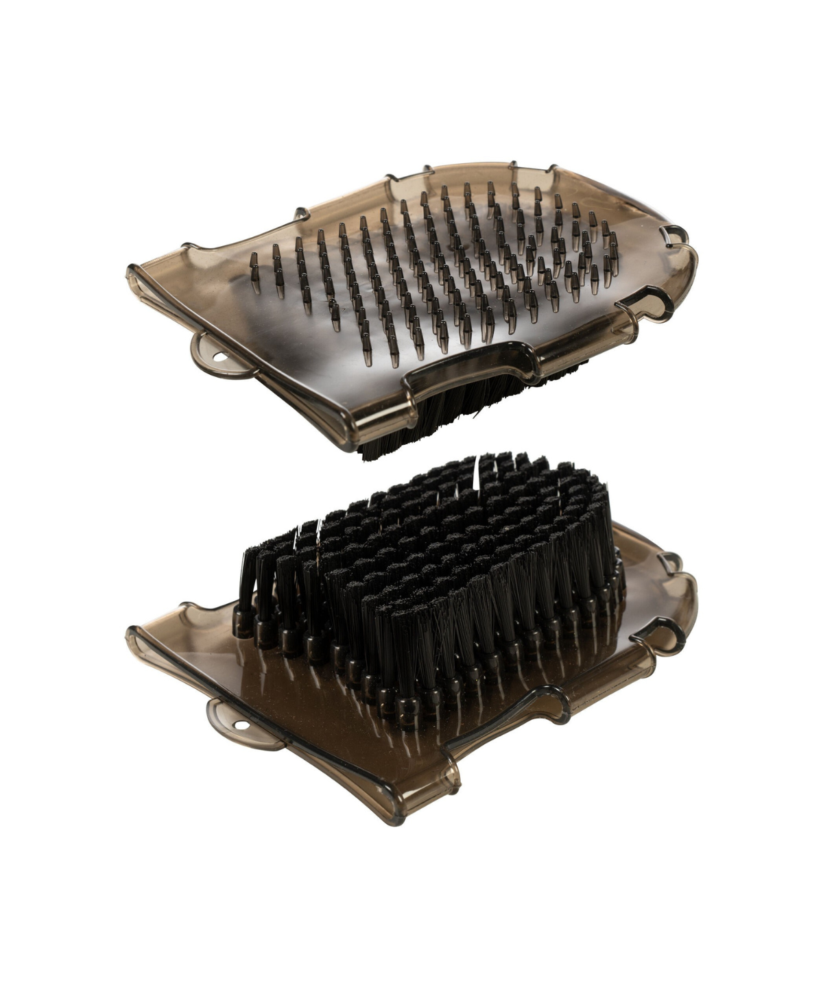 This grooming glove features plastic bristles that are approximately 2.5 cm long. The bristles provide thorough and effective grooming, removing dirt and debris while also massaging and stimulating the scalp for improved circulation and healthier hair growth. Say goodbye to tangled, dull hair and hello to a shiny, well-groomed coat.