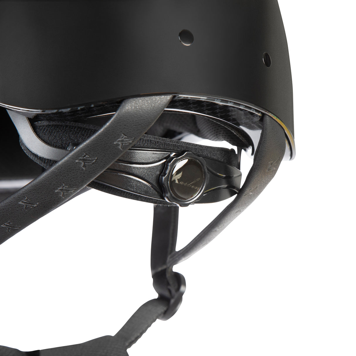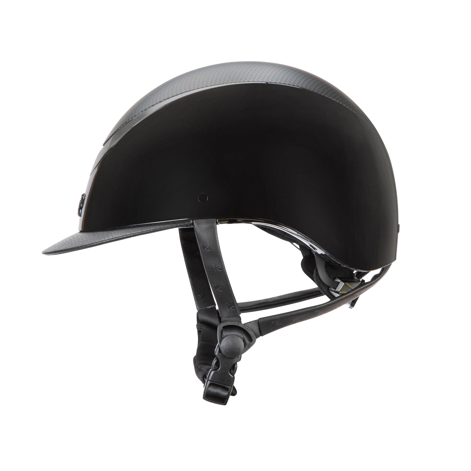 Fine-tune your fit with dial-adjusted Karben Ellipse riding hats. Featuring a carbon wrap at the crown, Drew brings an air of professionalism to its character. The crown is attractively set off by the high-shine gunmetal grey frame and a luminous gloss outer shell. SP Ellipse hats feature a distinctive mock leather-wrapped peak with the Karben monogram set above to gracefully set off the look.
