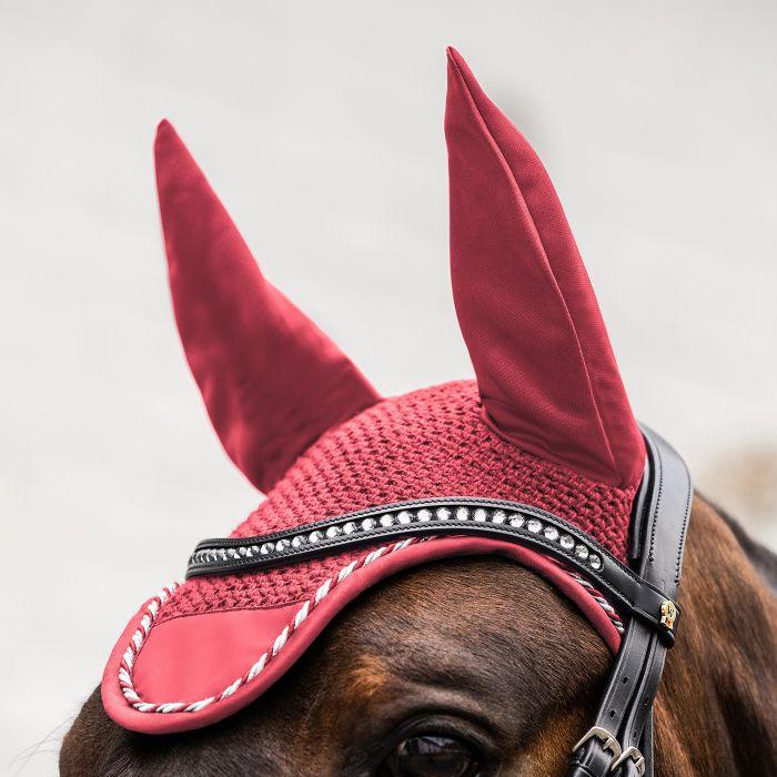 Optimum wearer comfort due to a soft and elastic polyester fabric. The forehead part is crocheted and finished off with a tricolour decorative cord. With elastic ears.